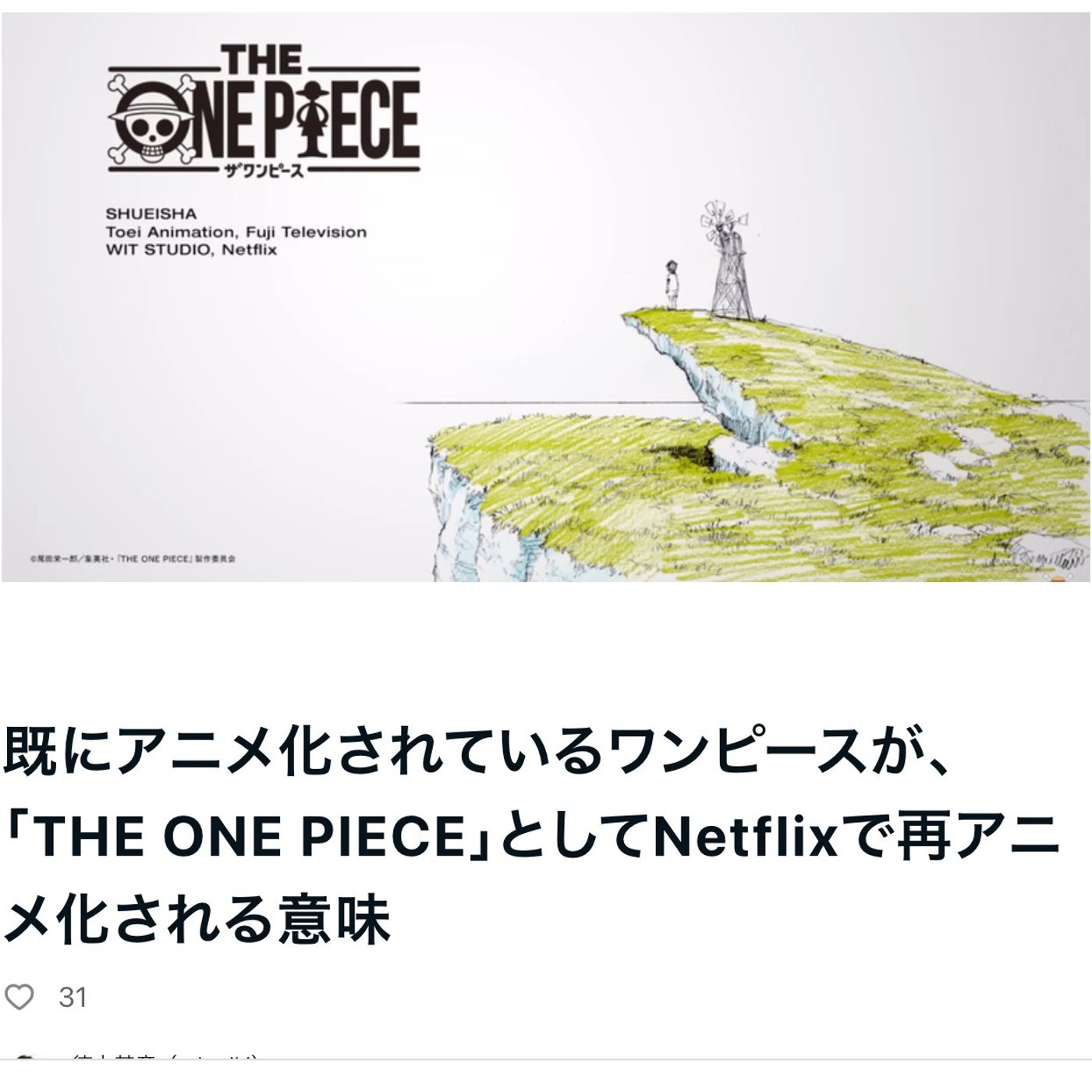 最初、このニュースを聞いた時は、Netflixでワンピースのアニメをやるよ、みたいな文脈で見ちゃったので、