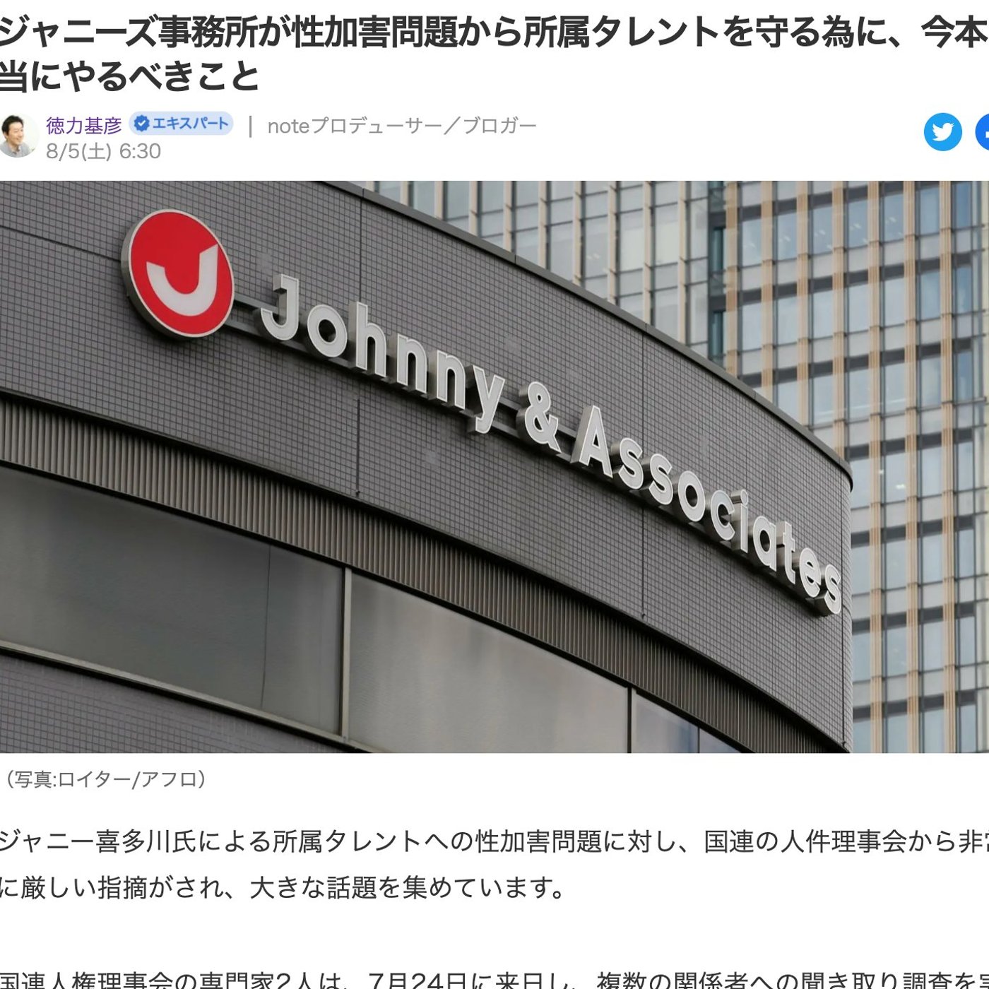 はい、こんにちは、徳力です。今日はですね、ちょっとできるだけこのミライカフェでは明るい話を紹介するようにしたいなと思ってるんですけど、ちょっとこれだけはモヤモヤしてスルーできなかったので、記事に書いてみました。ジャニーズ事務所のいわゆる成果買い問題ですね。