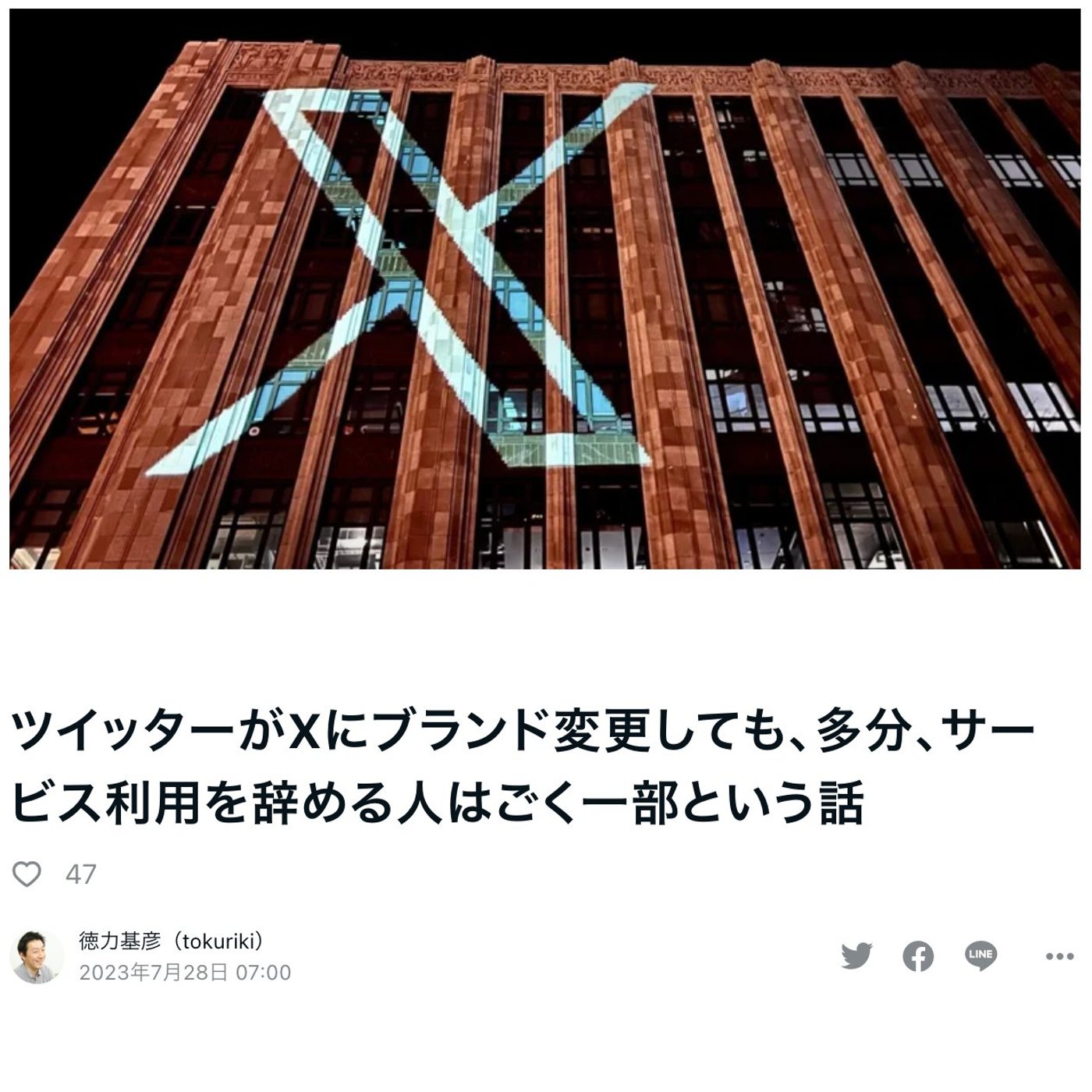 こんにちは、徳力です。今日も、ツイッターのXブランド変更ネタですね。