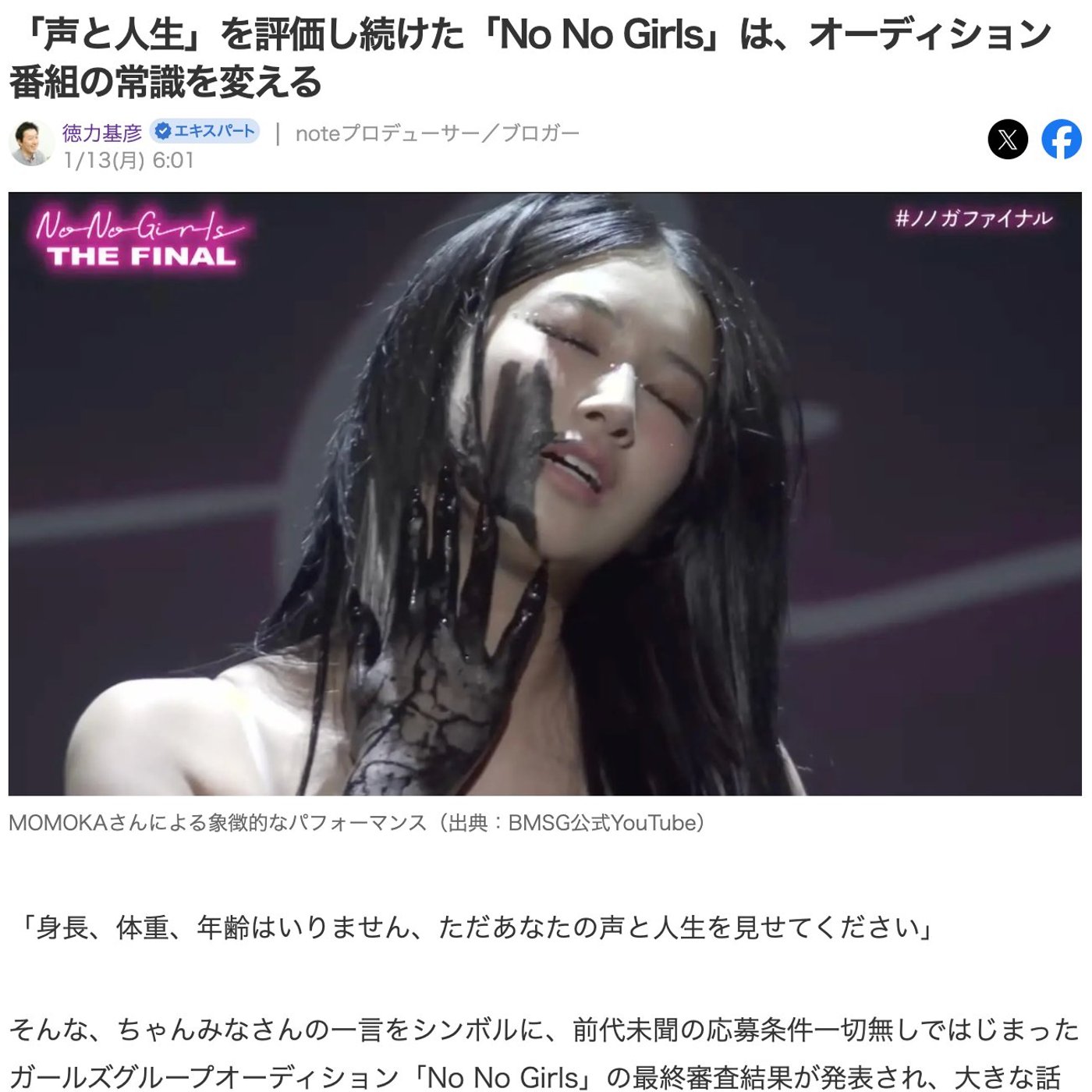Yahoo!ニュースの記事のタイトルも、声と人生を評価し続けたNo No Girlsは、オーディション番組の常識を変えるっていうタイトルにしてみました。