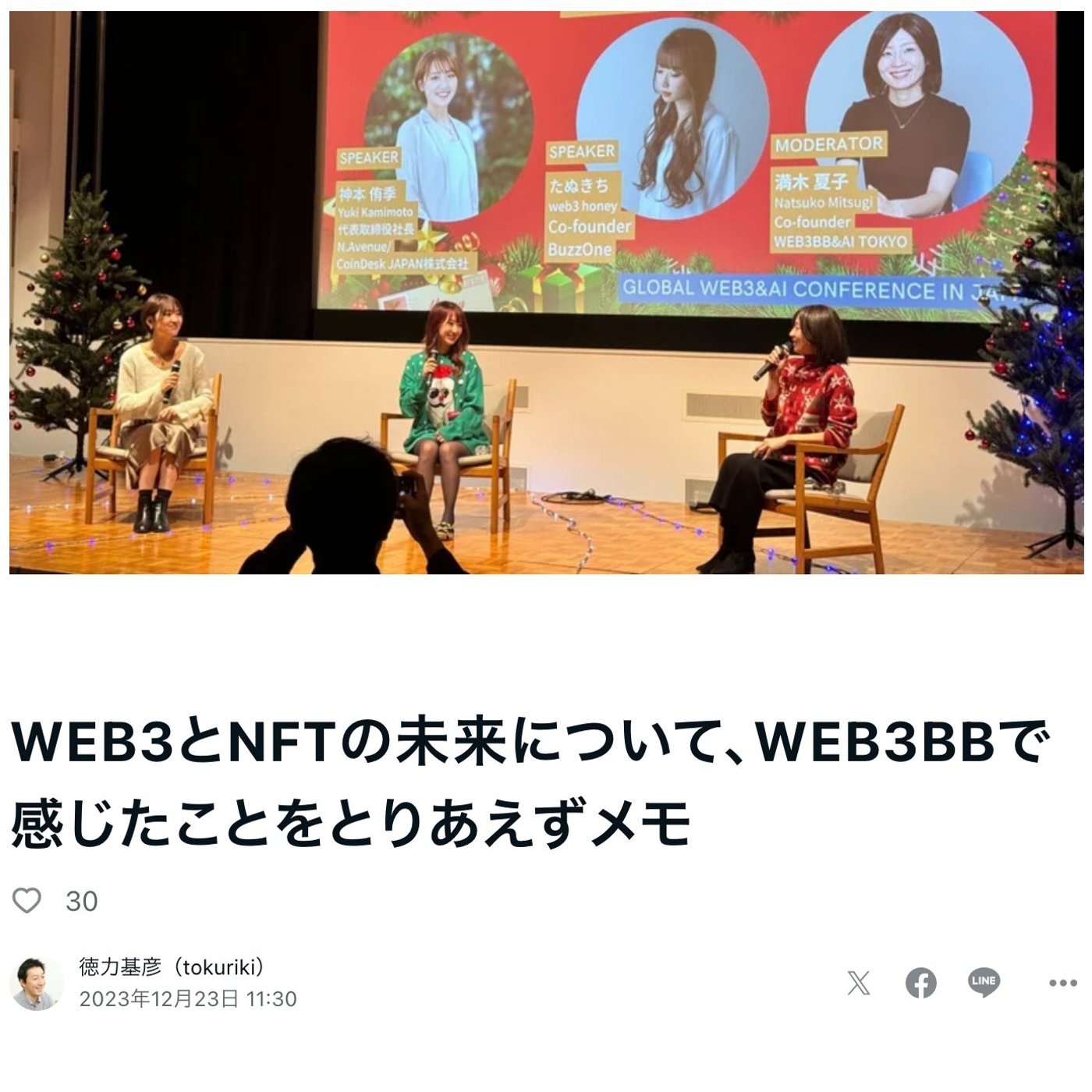 主催の三木さんと、CoinDeskJapanの神本さんと、WEB3のインフルエンサーの狸津さんの3人の2023年総括セッションというのは、
