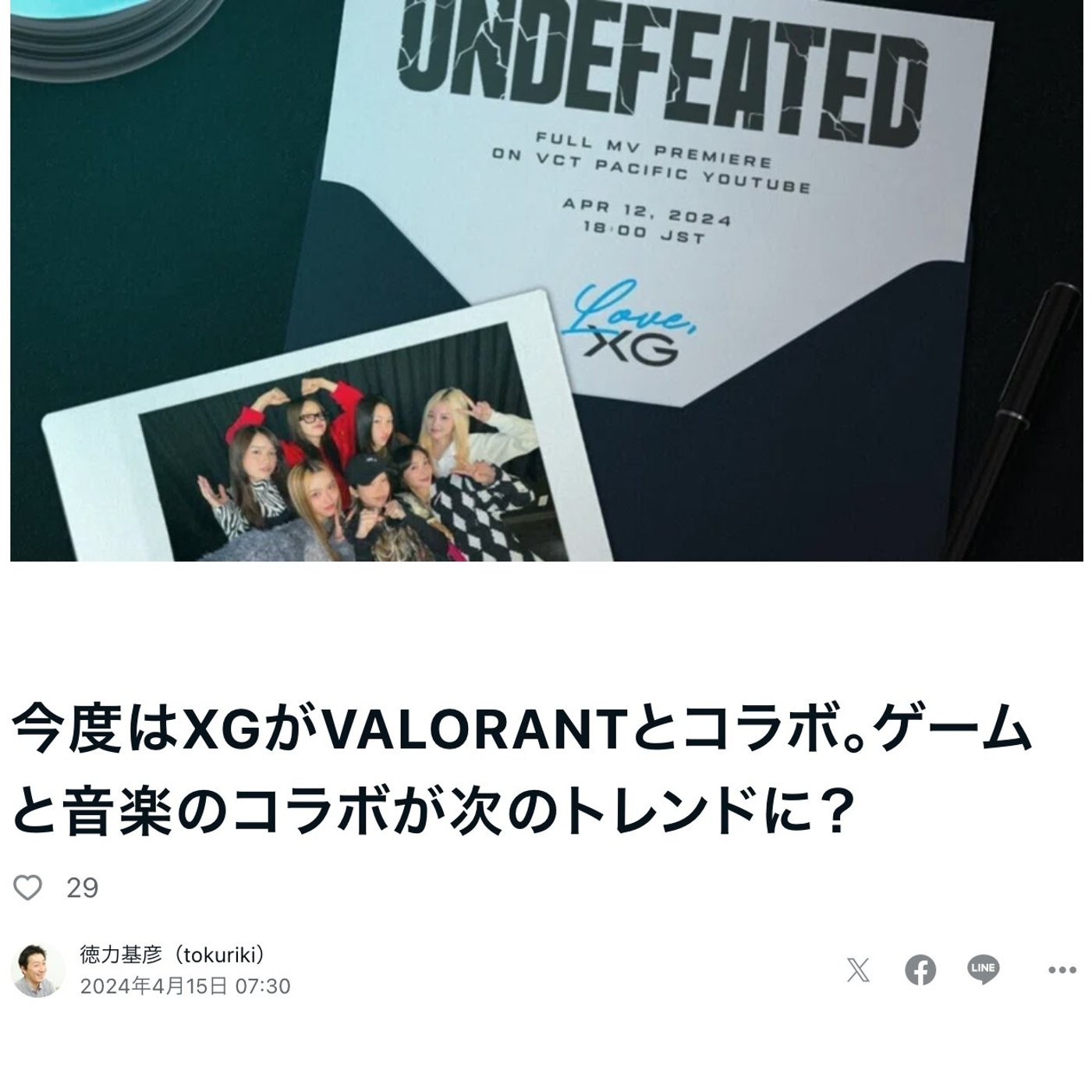 記事のタイトルは、今度XGがVALORANTとコラボ、ゲームと音楽のコラボが次のトレンドに、って書いてあるんですけど、