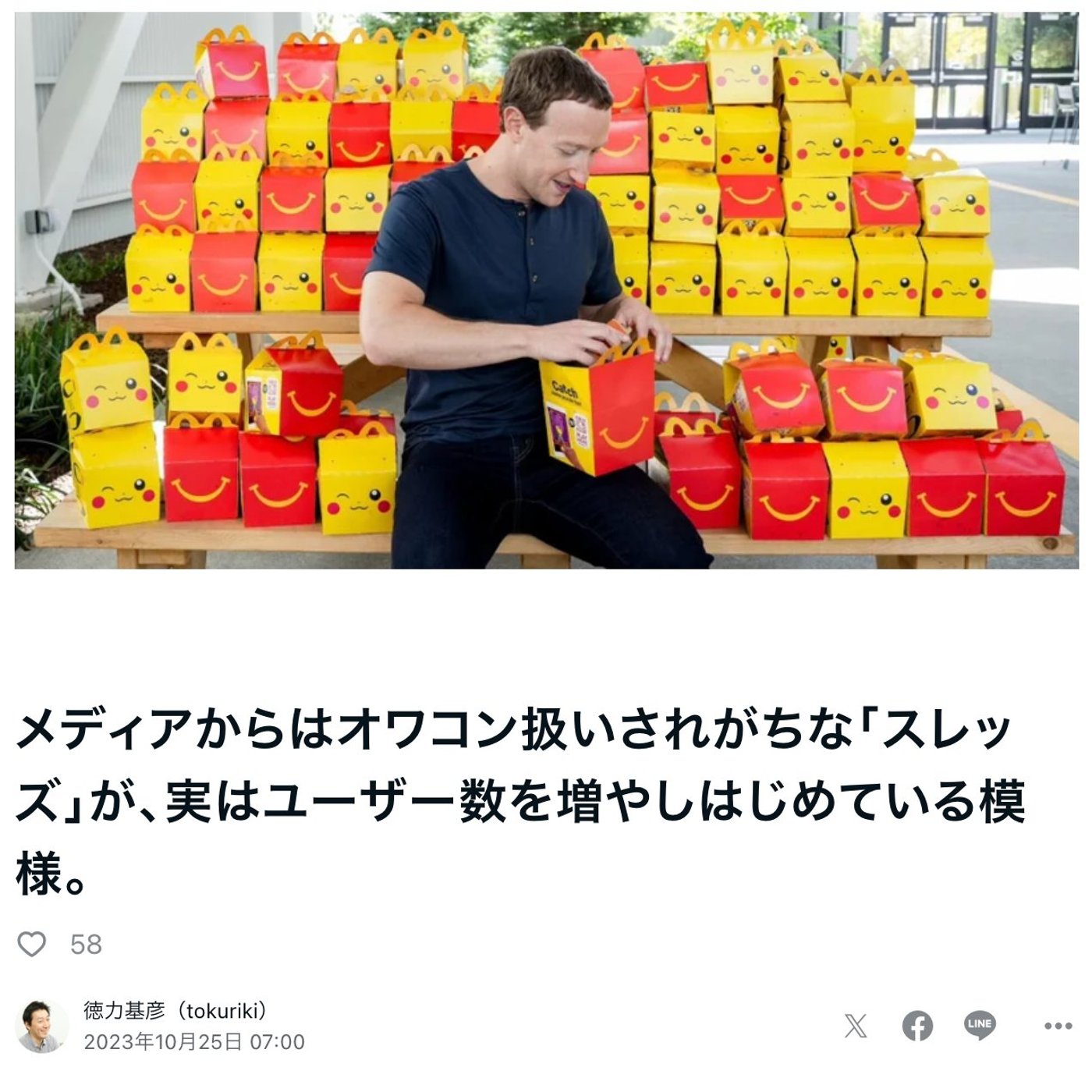 はい、こんにちは、徳力です。今日はですね、スレッズがいよいよ底打ちをして伸び始めたそうですという記事が出てましたので、ちょっとご紹介したいと思います。