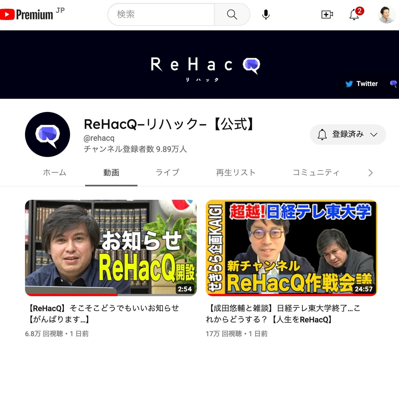 もうリハックだすげー登録者も9万人いってますね