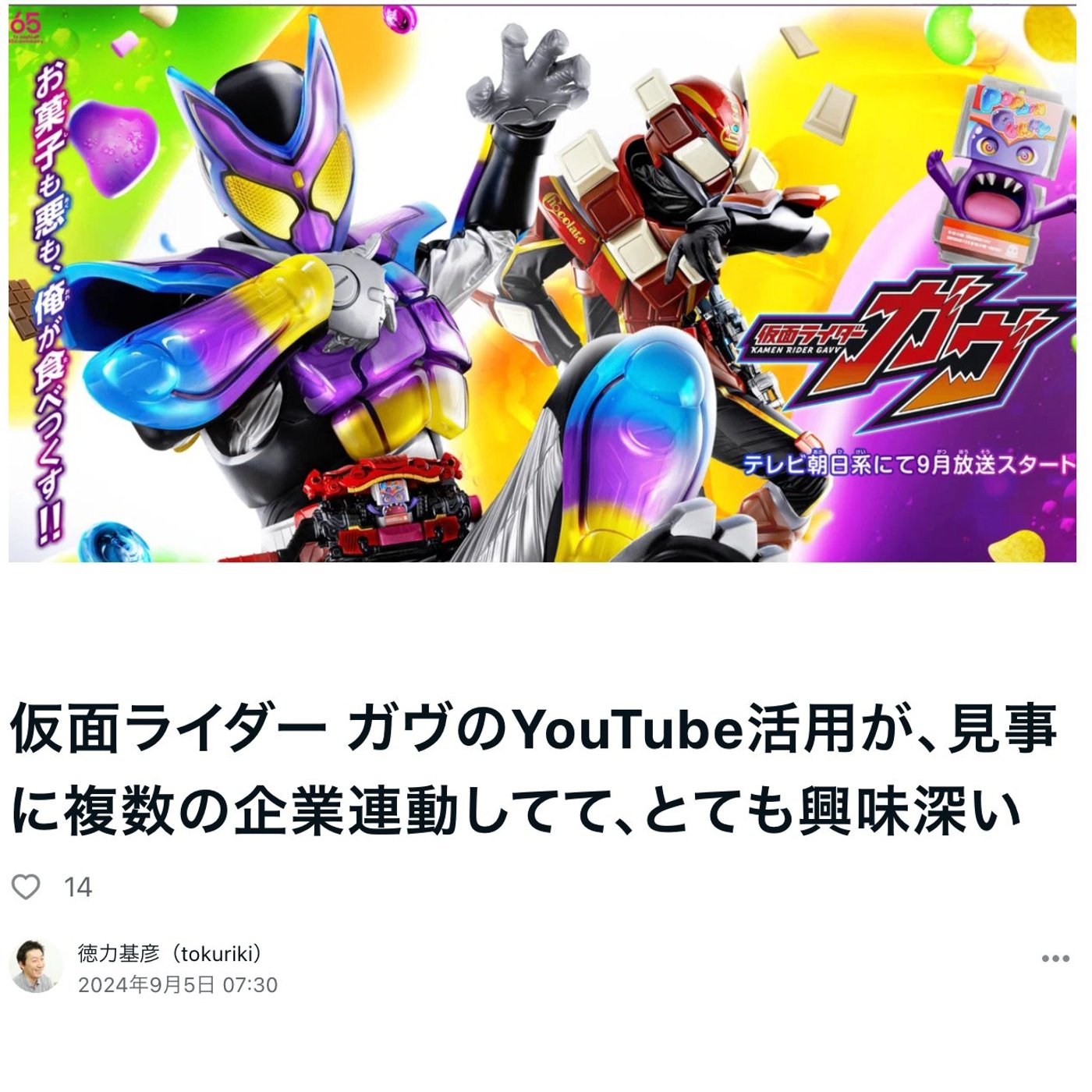 個人的にちょっとそれを追っかけでウォッチするのに当たって興味深かったのが、仮面ライダーチームのYouTubeの活用なんですよね。