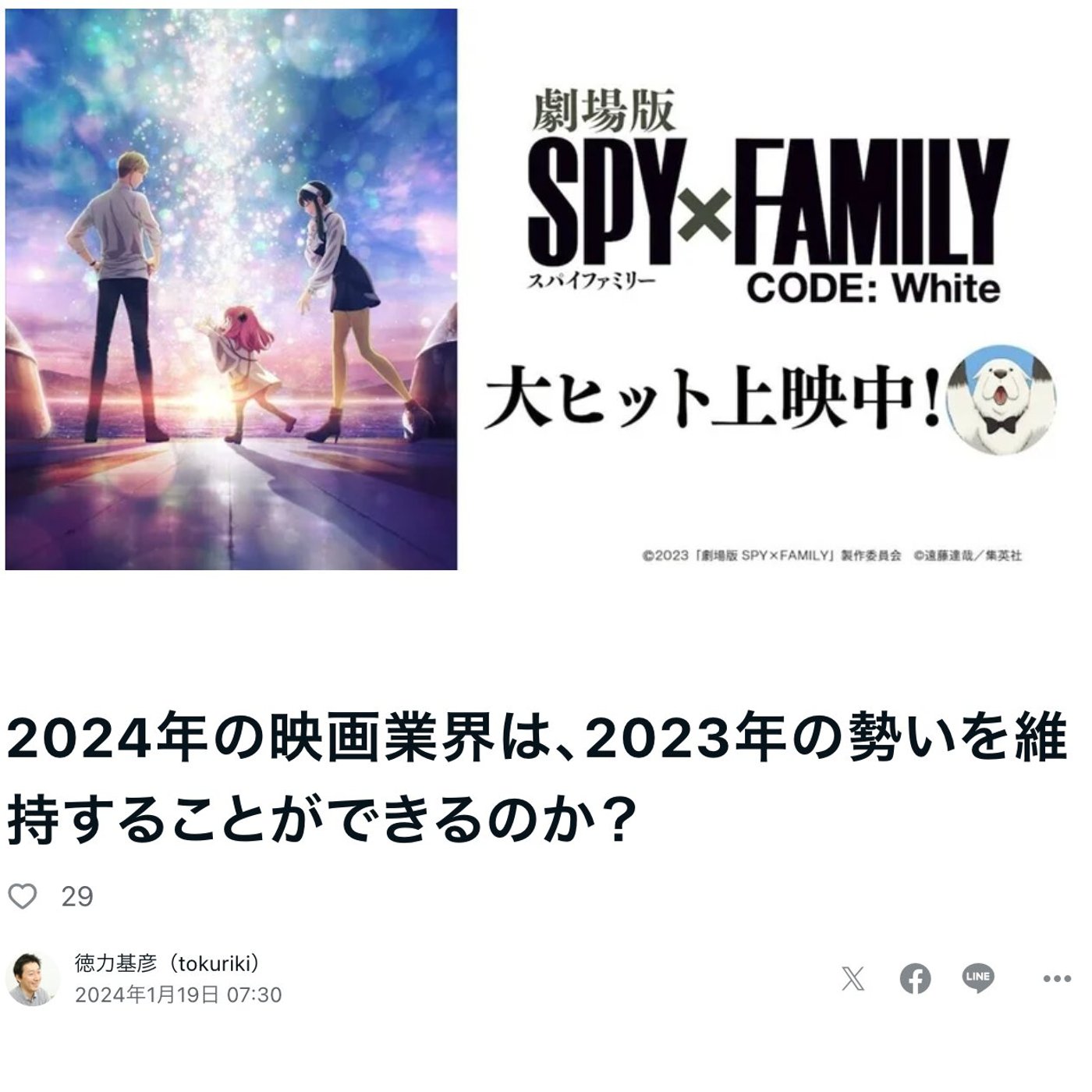 今年は、そういう意味ではスパイファミリーが今44億、年始の段階でいってるそうなんで、これが超ロングランになればいいかもしれないですね。