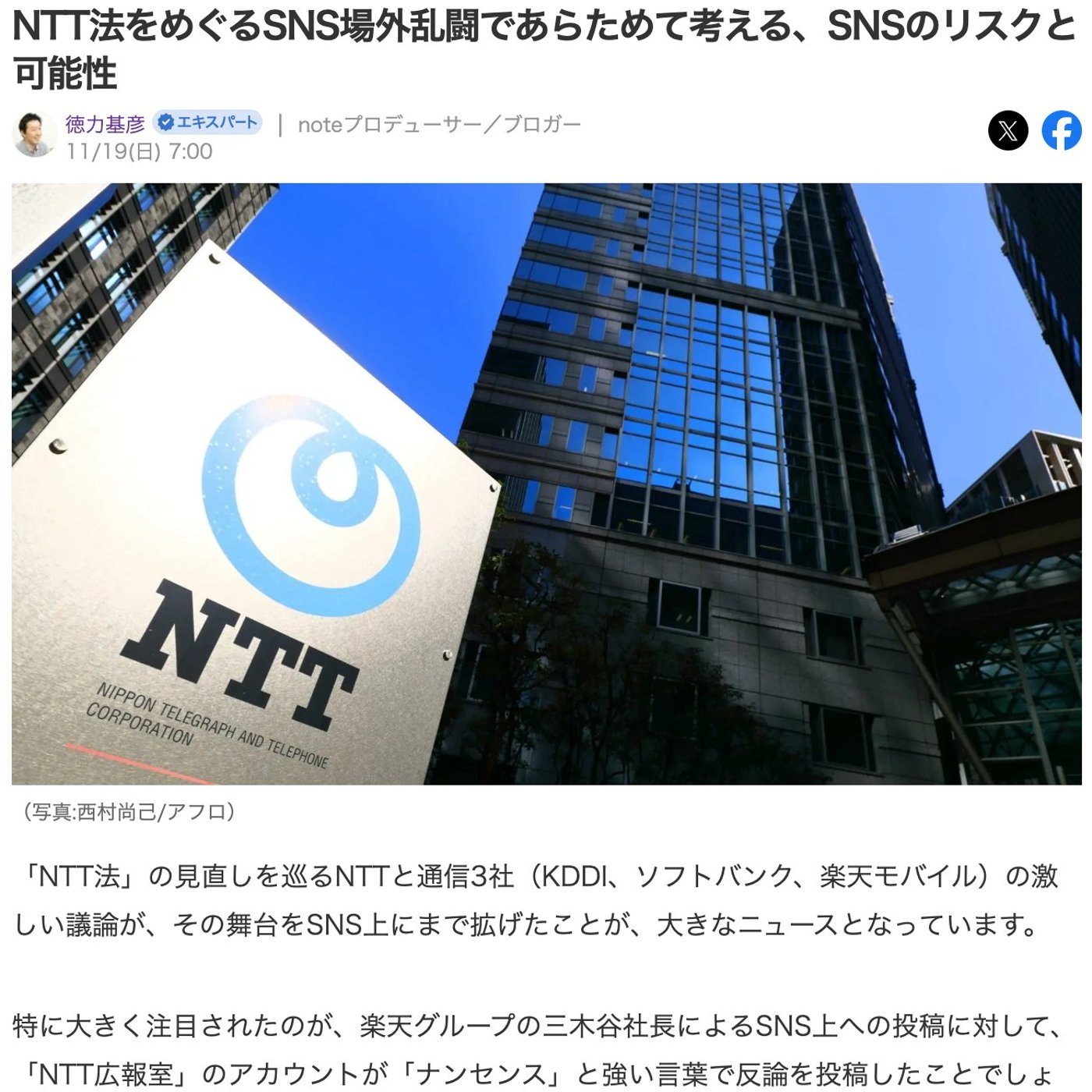 NTT法によるSNS場外乱闘