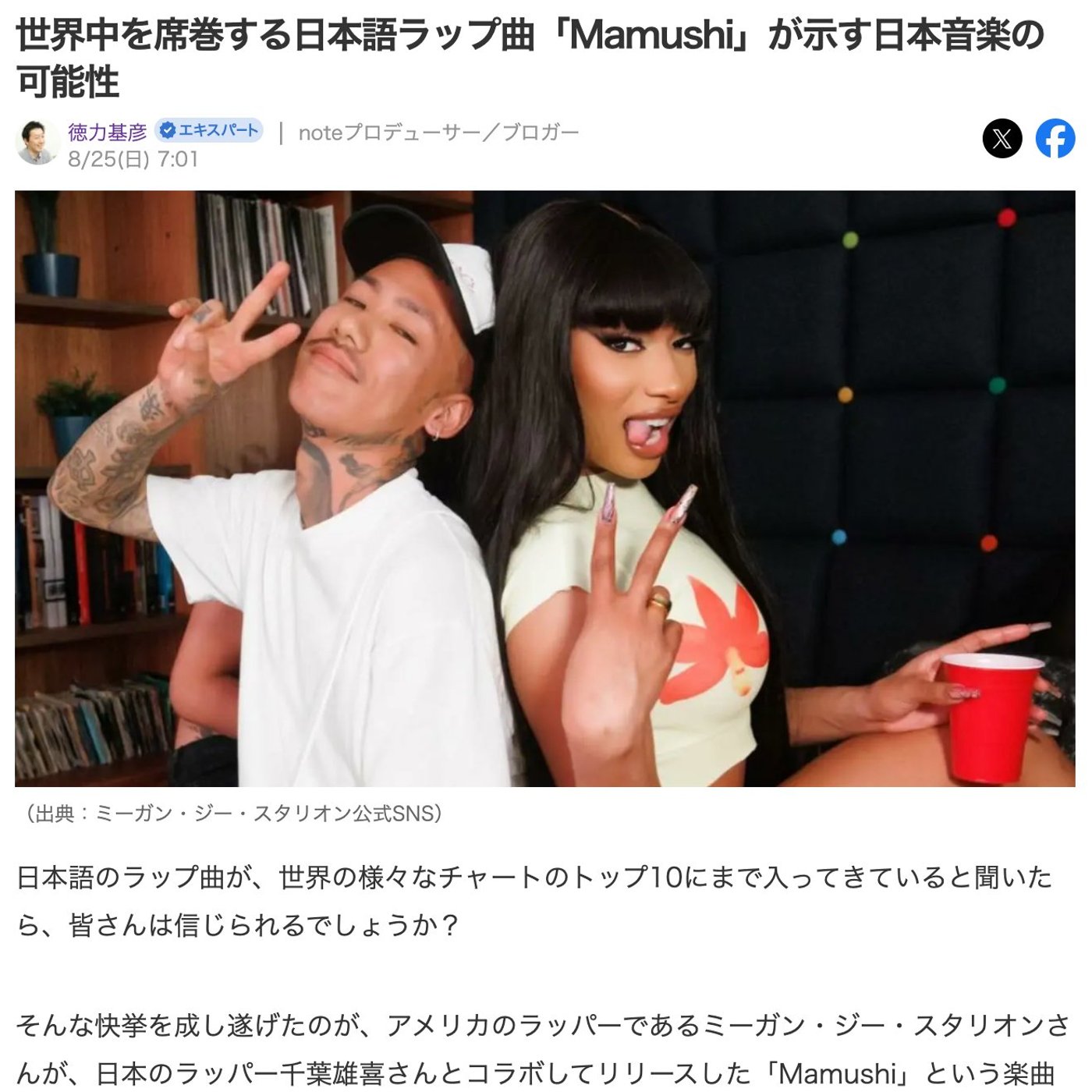 日本語ラップ曲を出されたのが、アメリカでは有名なラッパーのMegan G. Stallionさん。日本語の記載の仕方もね、ちょっといろいろあるんですけど。
