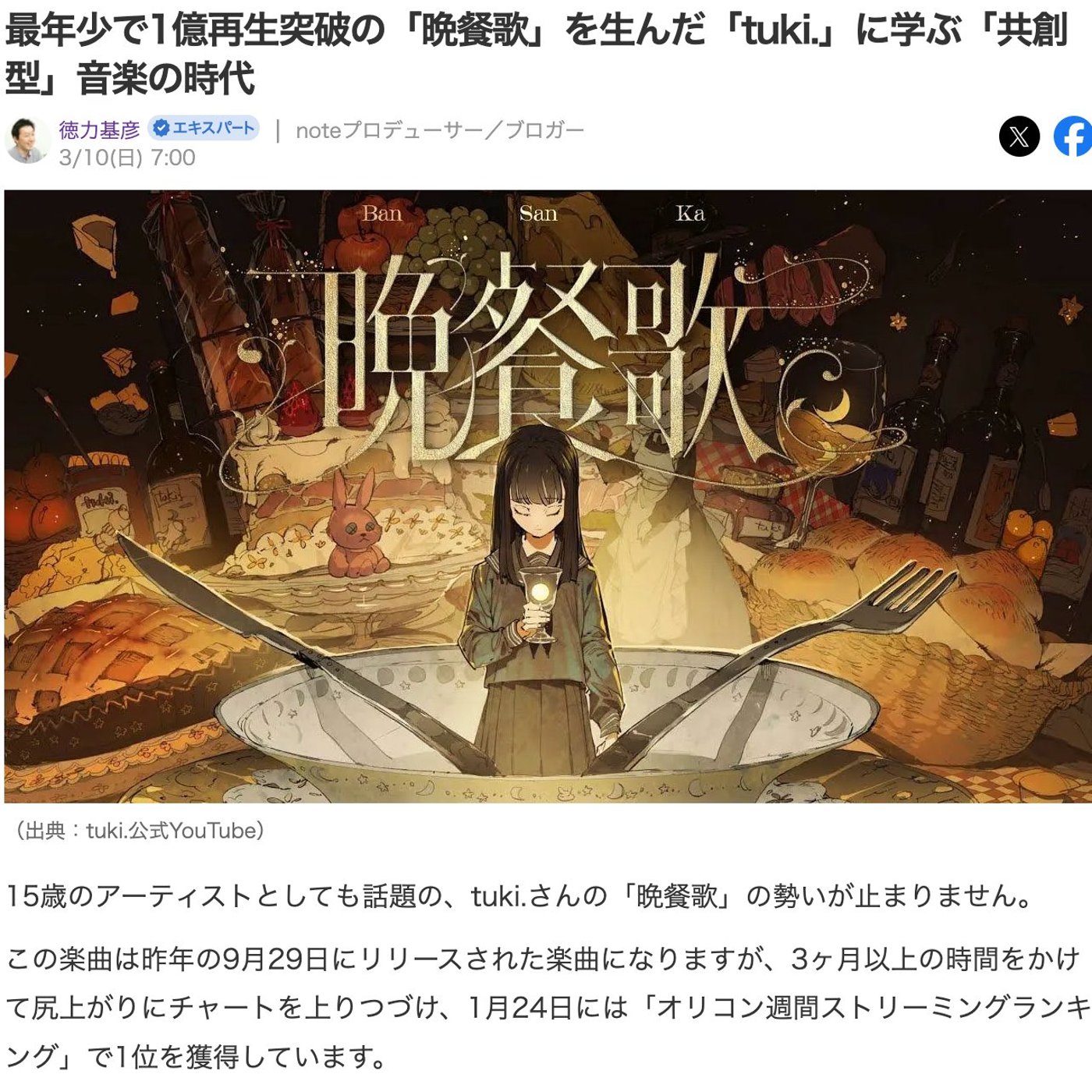 最年少で1億再生突破の晩餐歌を生んだ月に学ぶ共創型音楽の時代という記事をYahoo!に寄稿しましたので、ちょっと裏話をご紹介したいと思います。