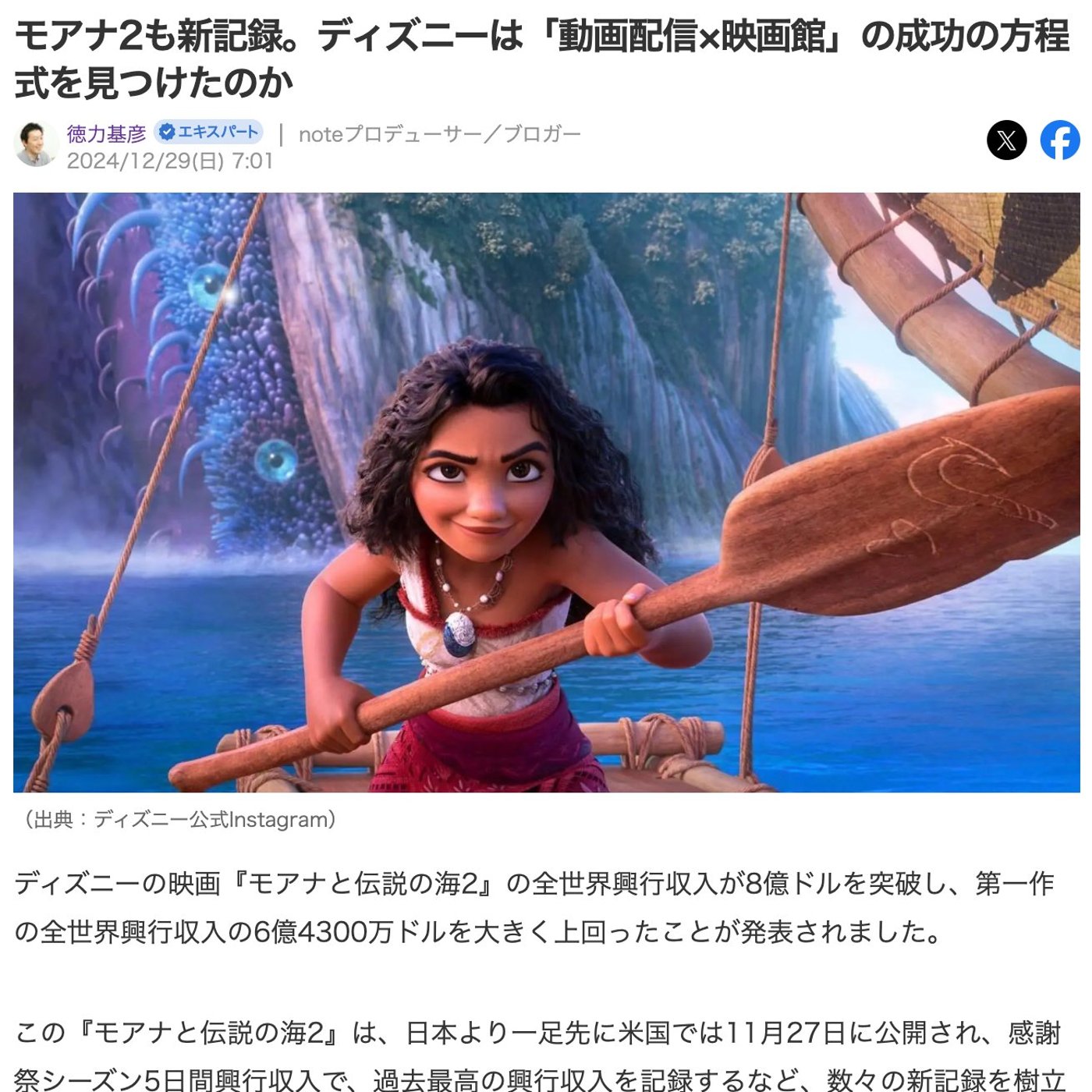 今日はですね、ディズニーの新作映画、モアナ2が記録をいろいろ更新しているということで、ちょっとYahoo!ニュースに記事を寄稿してみましたので、ご紹介したいと思います。