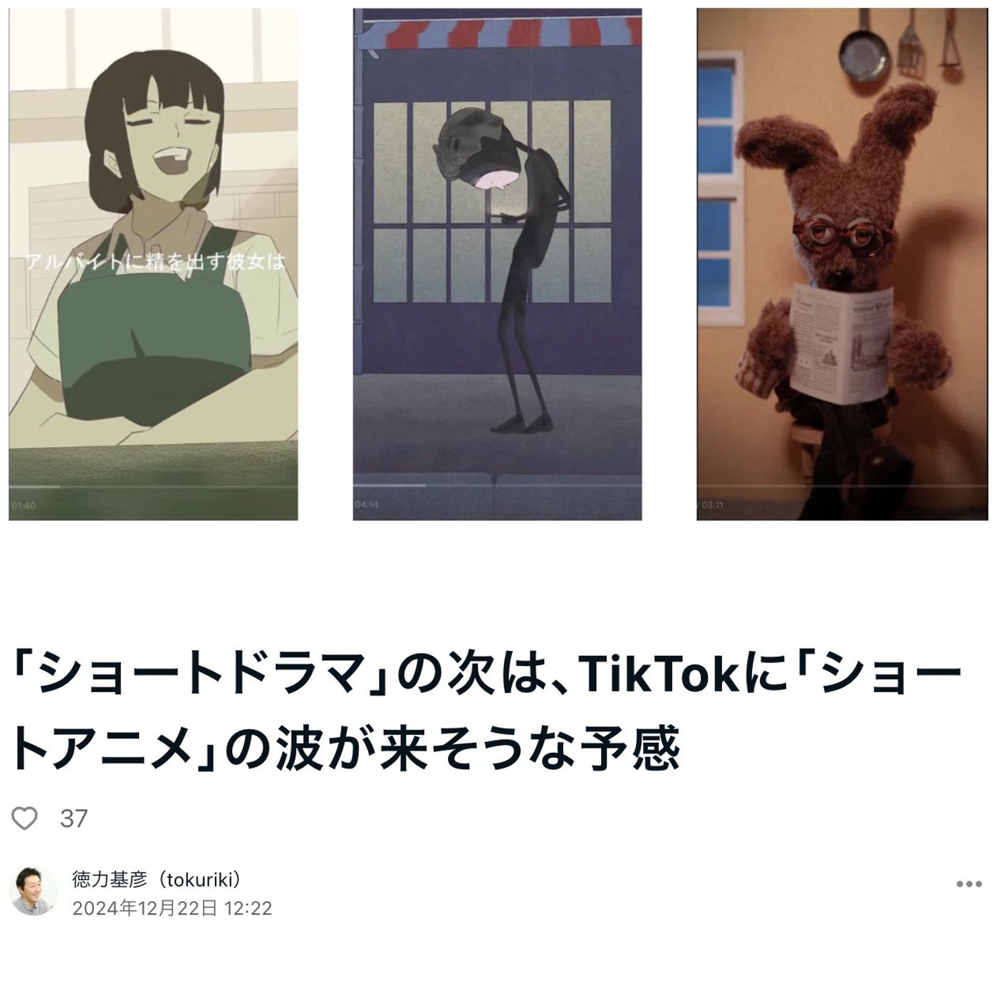 結構やっぱりこのショートと日本のアニメとグローバルにっていうのは相性が良さそうな気がするんで、ちょっとここから来年はまた大きいヒットが出るんじゃないかなと思って注目したいと思います。