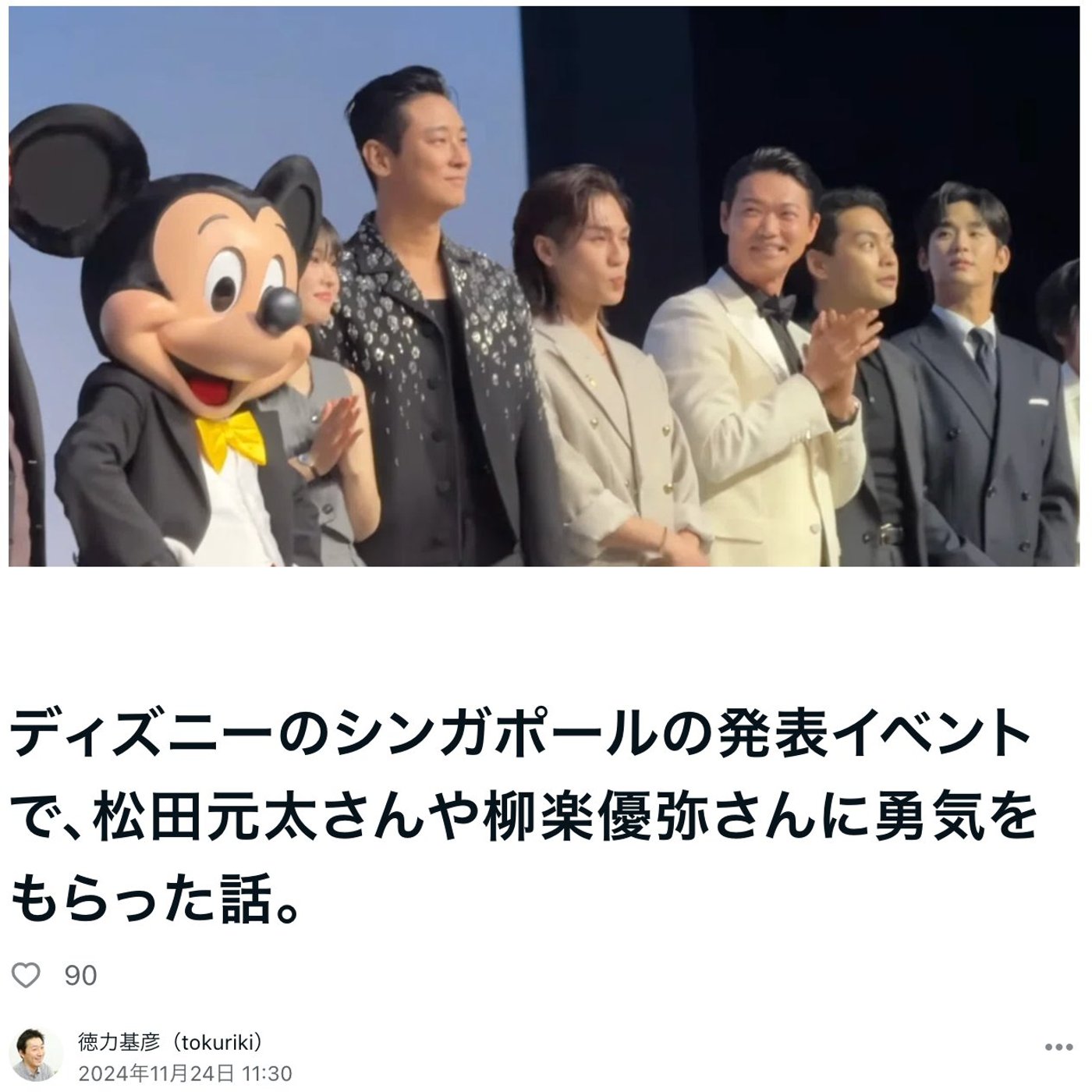 はい、こんにちは、徳力です。今日はですね、先日ディズニーさんにも招待いただいて参加しました、ディズニーコンテンツショーケースAPAC 2024の