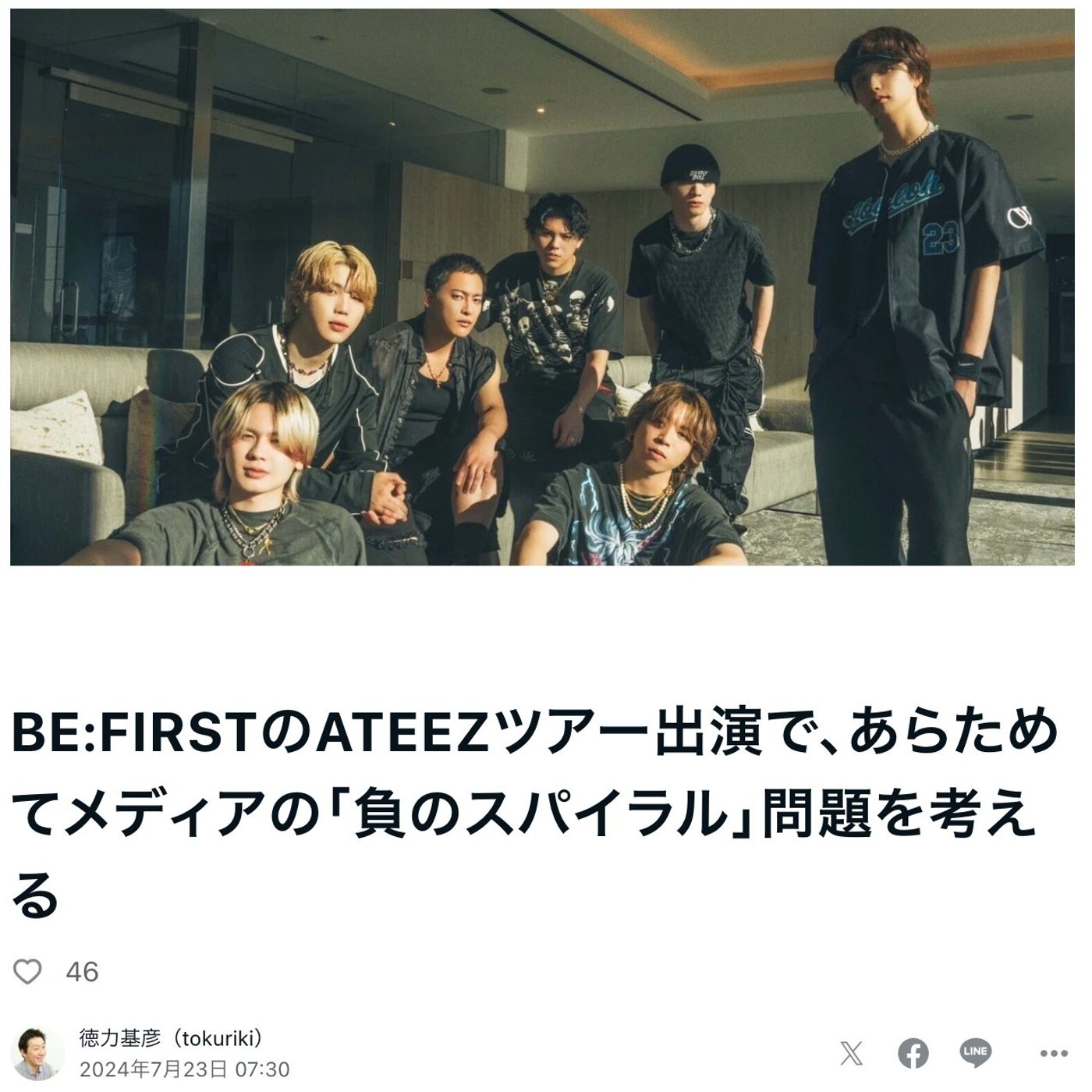 はい、こんにちは、徳力基です。今日はですね、BE FIRSTとATEEZのロサンゼルスツアー、