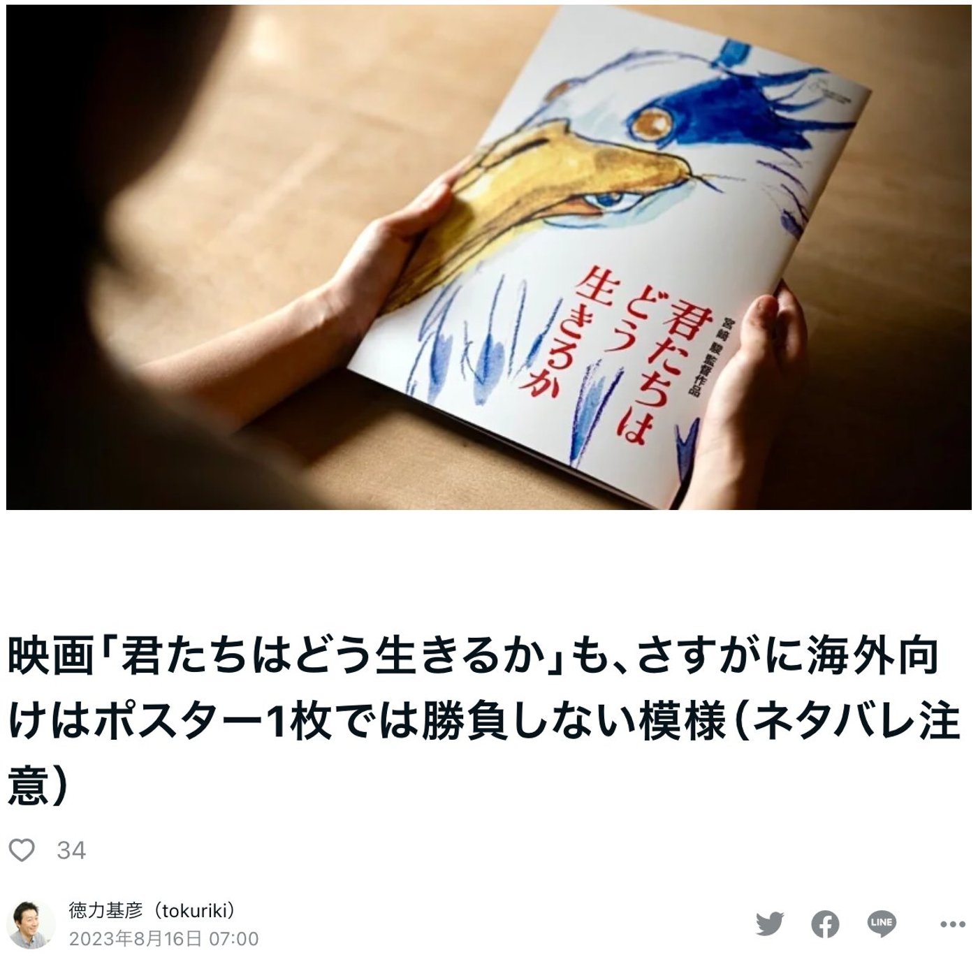 日本においてはもうアオサギのポスター1枚で勝負っていう。ギリあれですね、スタジオジブリのツイッターアカウント、Xアカウントもツイッターアカウントで、