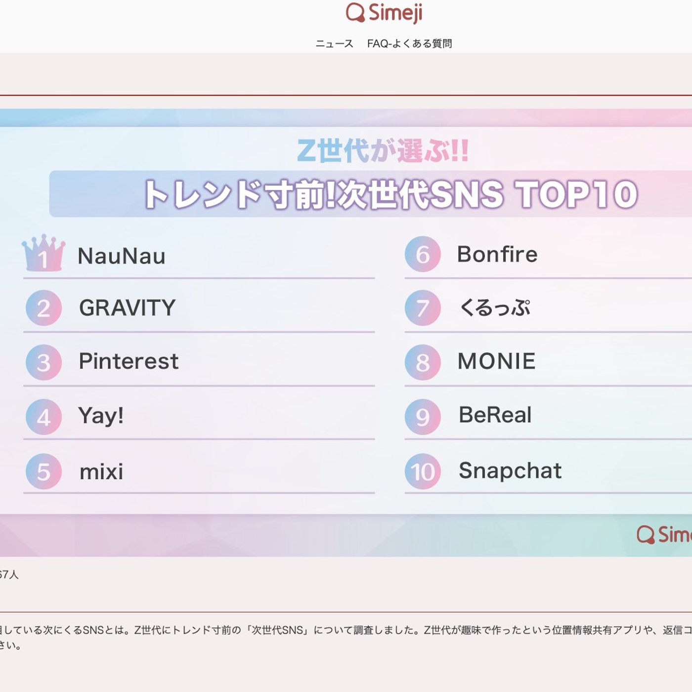 この次世代SNSトップ10の方に結構ね