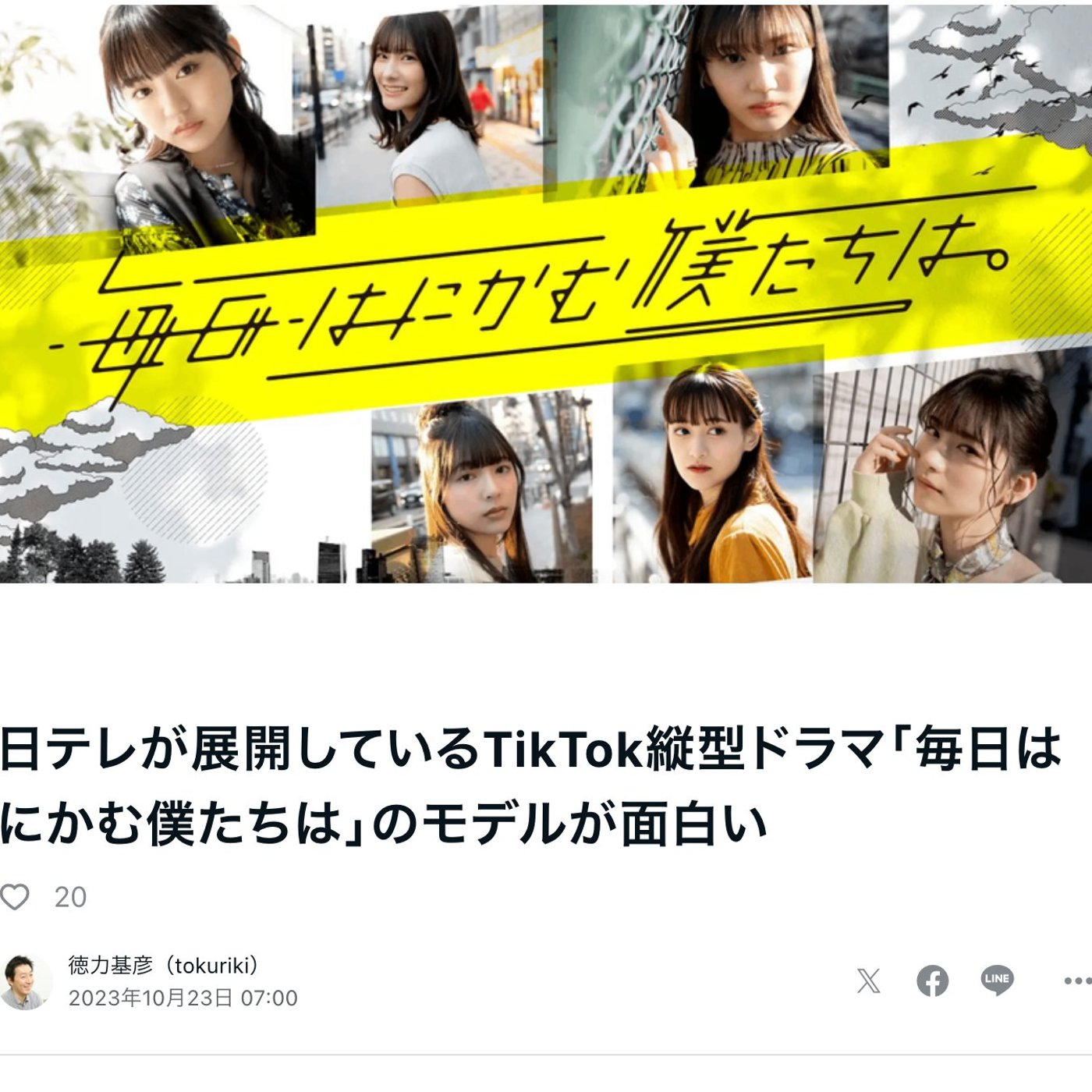 日テレさんがこのTikTokの縦型ドラマのビジネスモデルを今確立しようとしているって話がすごい面白かったんで、ご紹介したいと思います。