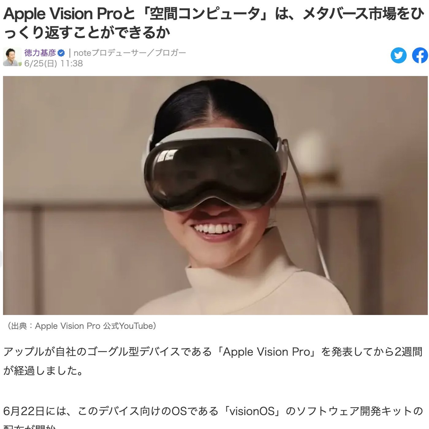 だからAppleすげーっつって言い過ぎるのも違うし、Appleは失敗するっていうのも違うかなって、たまのしいろの結論なんですけど、この辺は岩澤さんが結構発表会の翌日かな、Apple Vision Proを見て、これはVRヘッドセットではないっていう、かぶれる大我慢ディスプレイコンセプトだっていうのを全然違うものとして考えた方がいいっていう記事を出してるのが個人的にも印象深かったんで、それが軸になったんですけど。