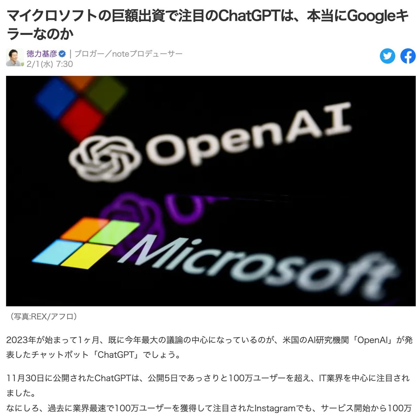 今日はですね、チャットGPT、話題のAIチャットボットについての記事を