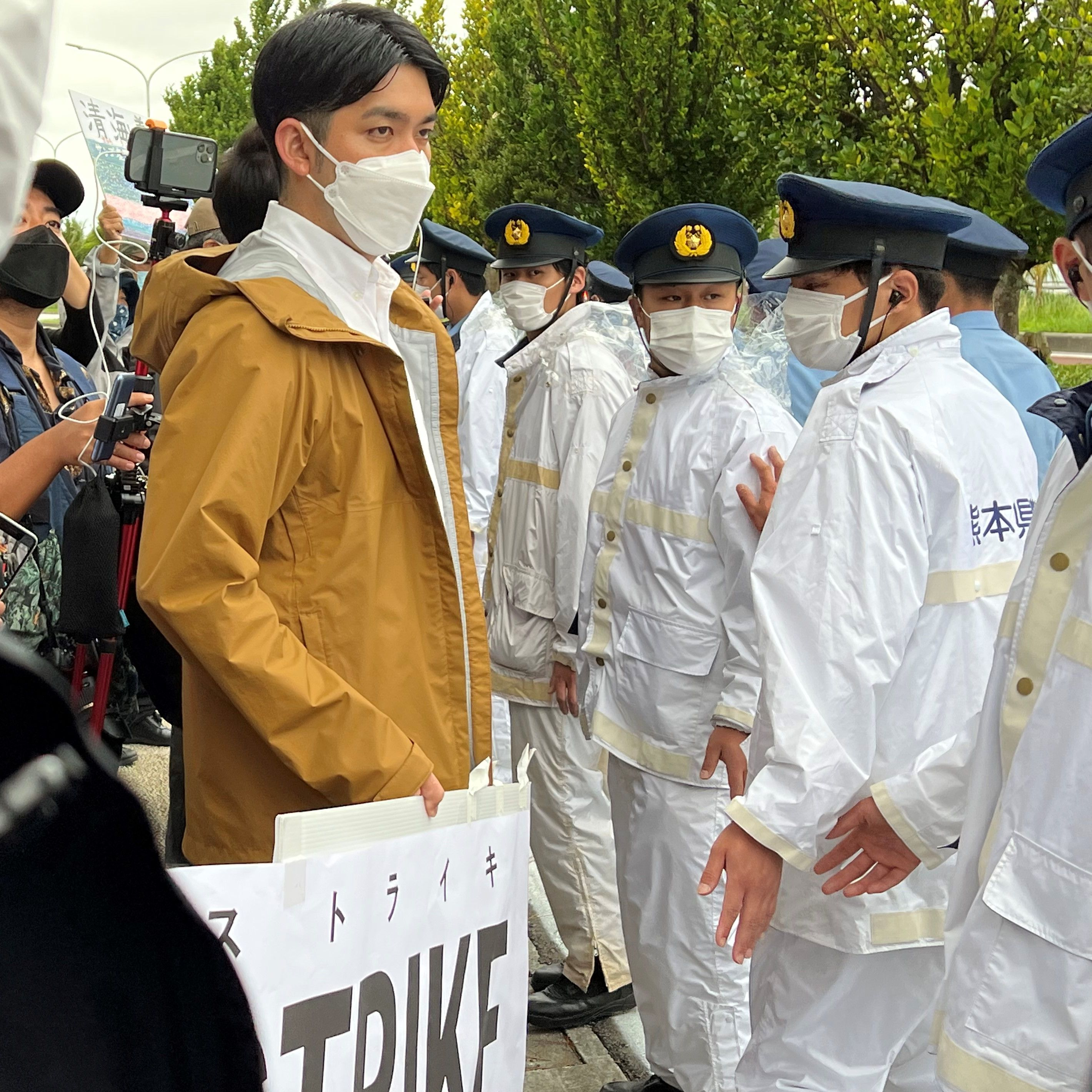 沖縄復帰50周年記念式典の会場外では、デモが行われていました。ハンガーストライキをする大学院生の元山仁士郎さんの姿も。他社の記者たちに混じって取材をしていた安田桂子でしたが、いたたまれない思いを感じ、その場を離れてしまいます。