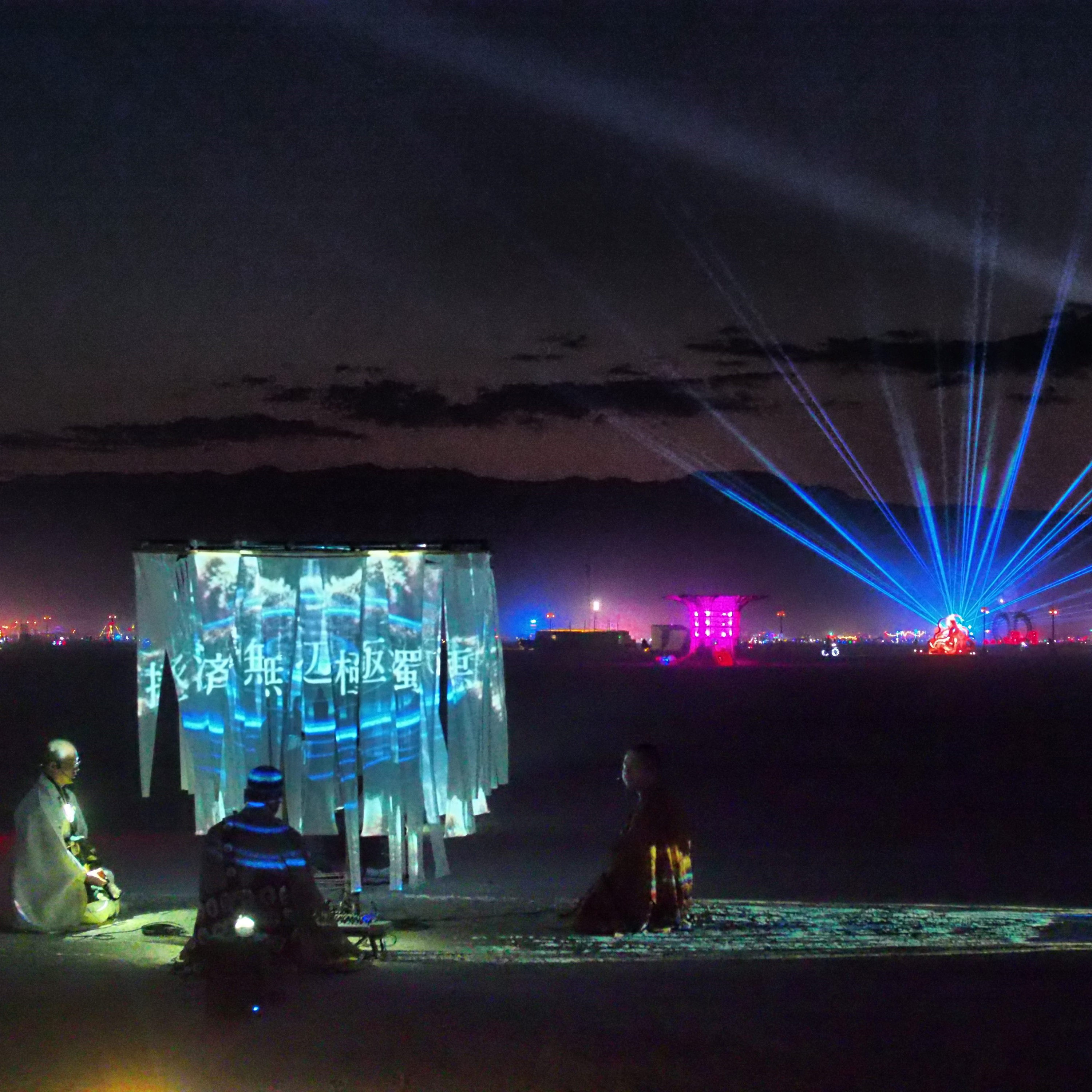仏像に極彩色の光 テクノ法要 「阿弥陀様は光の存在」