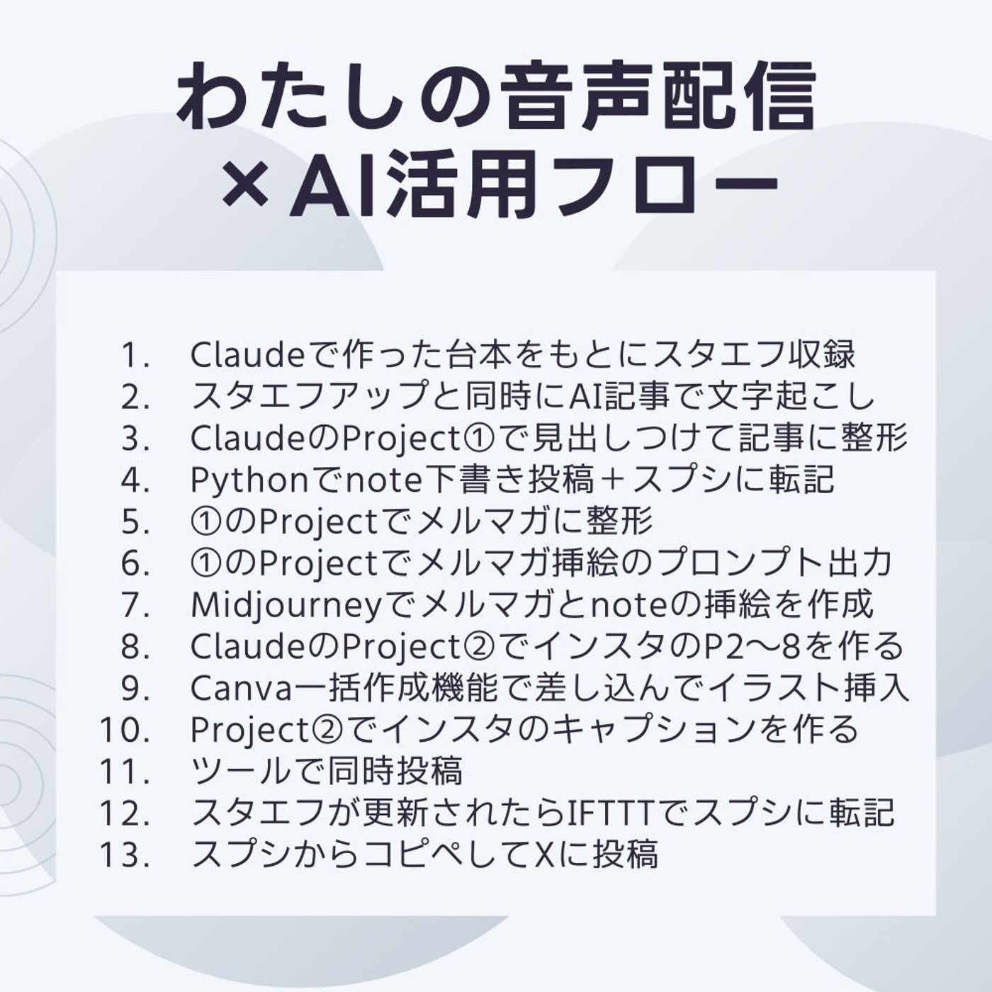 さて、今日のテーマは、音声配信からのマルチ展開、AIを活用して影響力を最大化する方法です。