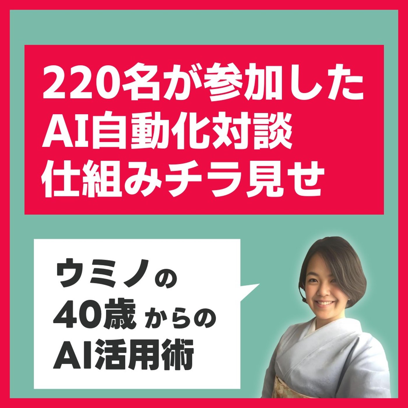 みなさん、こんにちは。40歳からのAI活用塾のウミノです。40歳からのAIは楽しいだけじゃダメ。AIを使って仕事や育児、生活を1日2時間時短する方法をサクッとお伝えしていきます。