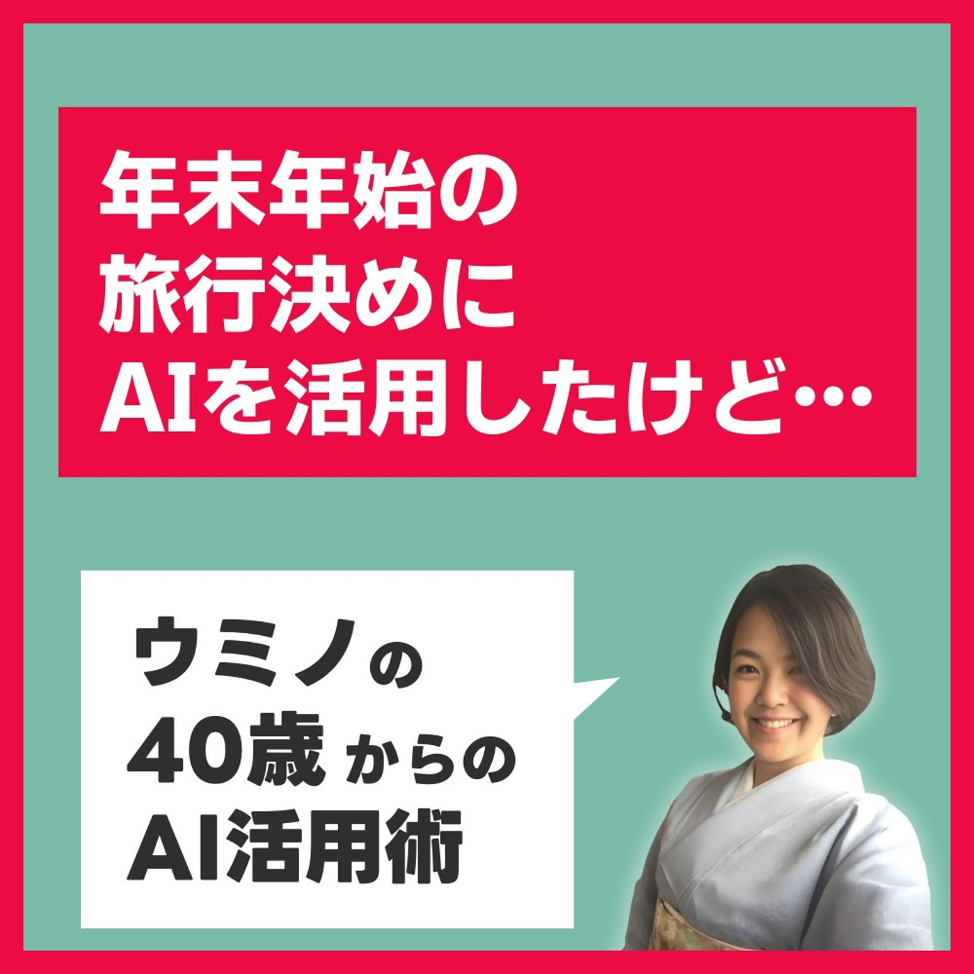 こんにちは、40歳からのAI活用塾のウミノです。40歳からのAIは楽しいだけじゃダメ、仕事や育児、生活を1日2時間時短する方法をサクッとお伝えするチャンネルです。