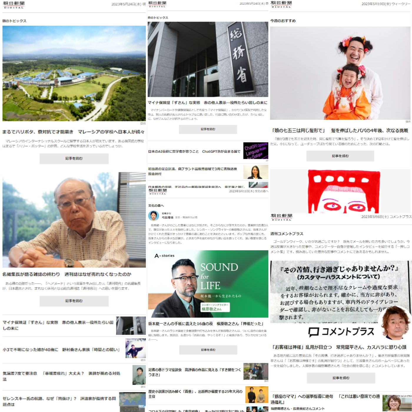 メールで読者にオススメ記事を紹介するニュースレター。朝日新聞は30種類以上を日々配信しています。大量の記事がある朝日新聞デジタルですが、あなたの好みに応じたぴったりの記事が見つかるかも知れません。編成担当者が魅力をお伝えします。