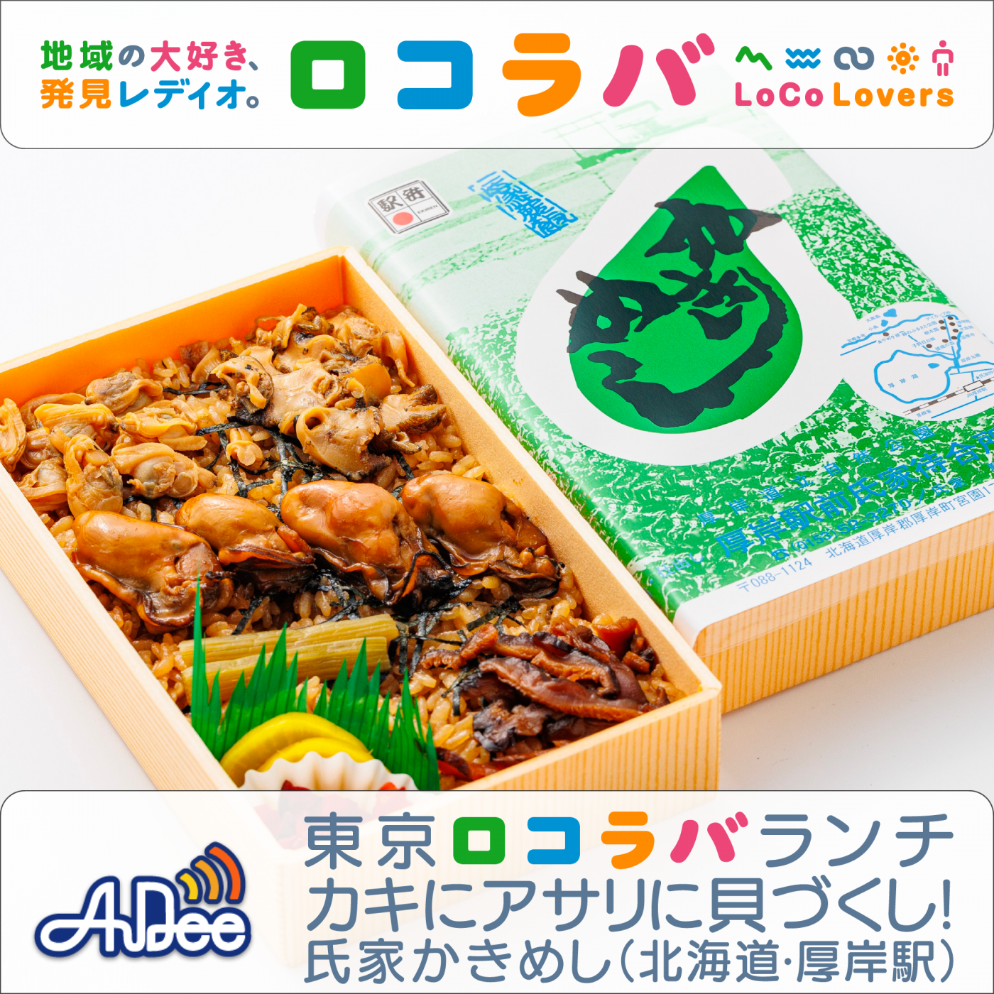 全国のコミュニティFMで生放送「ロコラバ」東京で食べられる地域の食をご紹介する「東京ロコラバランチ」天谷窓大さんとお届けします。9/11の放送では、北海道・厚岸駅の駅弁「氏家かきめし」をご紹介しました。ロコラバWebサイトもあわせてご覧ください!