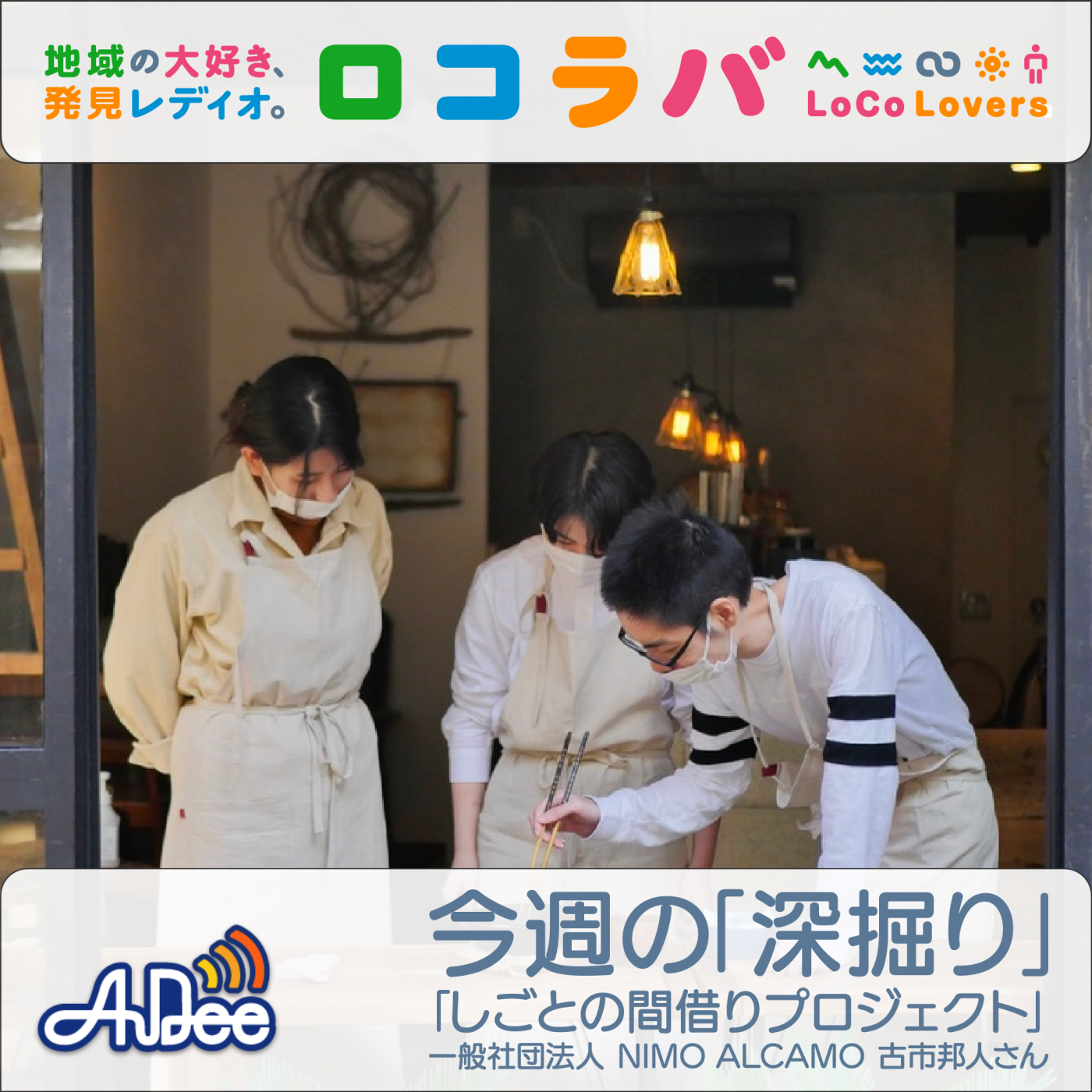 一般社団法人NIMO ALCAMO 代表理事の古市邦人さんにお話を伺いました。ロコラバWebサイトもあわせてご覧ください!