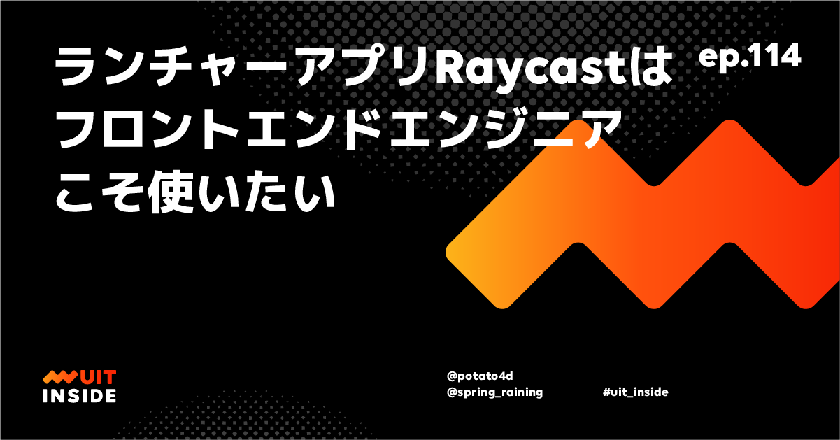 @spring-raining が、最近ランチャーアプリ Raycast を使い始めた @potato4d に Raycast の良さや Extension の開発について聞いてみました。