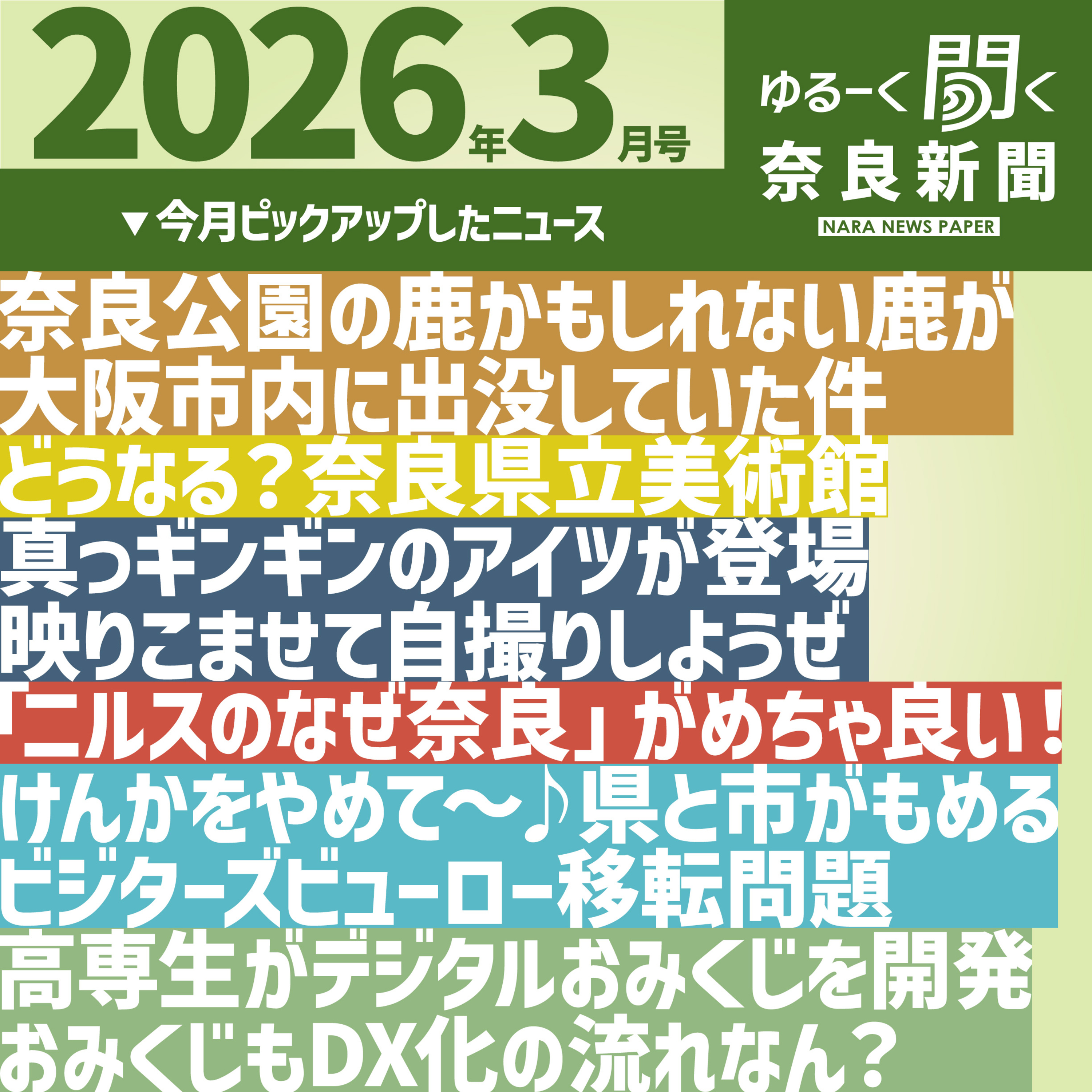 2026年3月の奈良新聞に掲載されたニュースをいくつか選んでそれについてコメントしています。