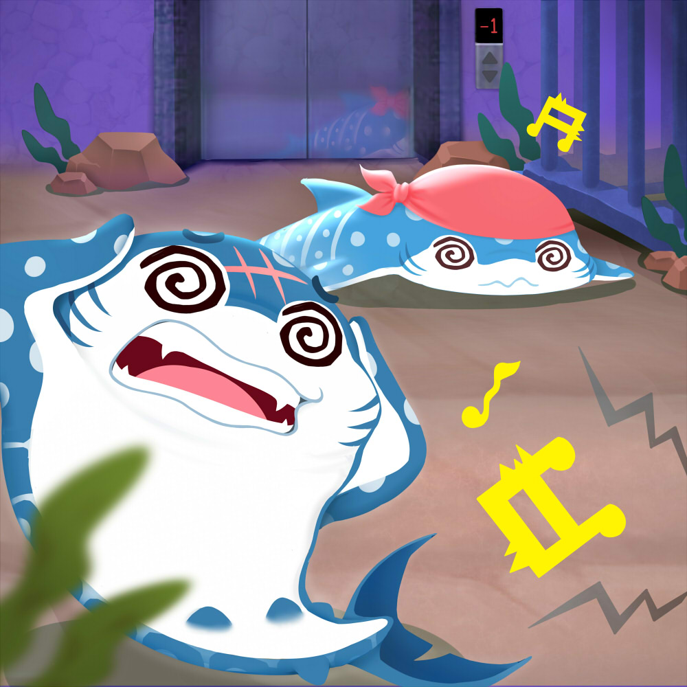 黒服のサメが遠ざかると、みちるたちは泳ぐスピードを速め、シロシュモク城を後にしました。