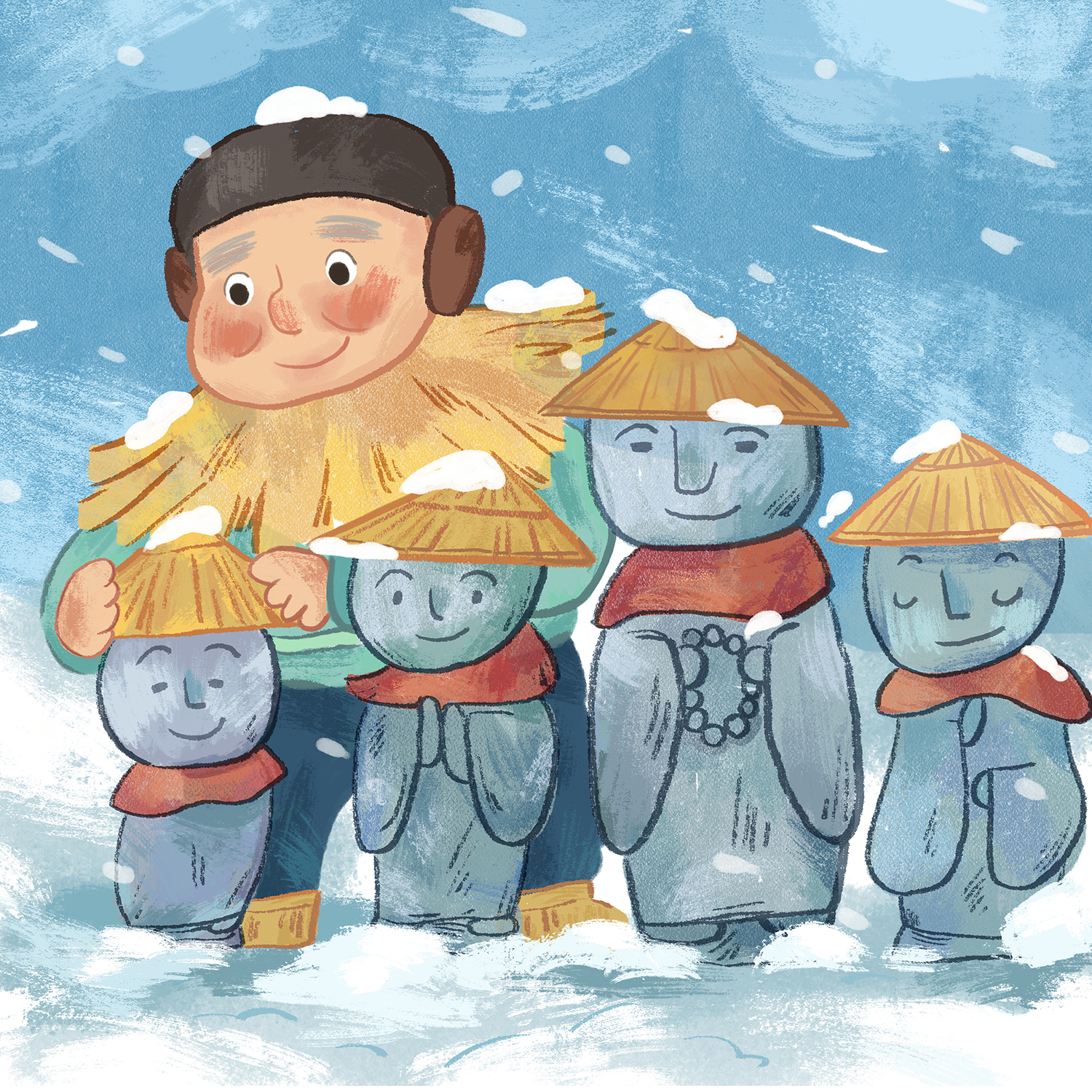 昔々、あるところに貧しいおじいさんとおばあさんがいました。雪が降る大晦日のことです。おじいさんはため息をつきました。