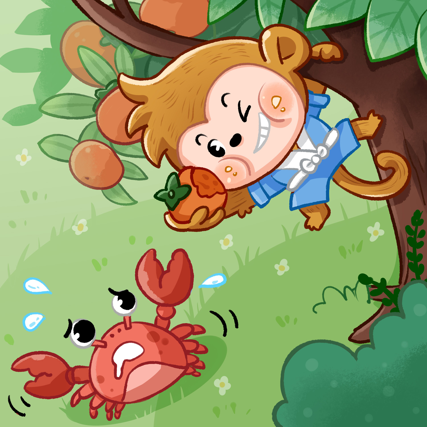 昔々、山道を一匹の猿がとぼとぼ歩いていました。