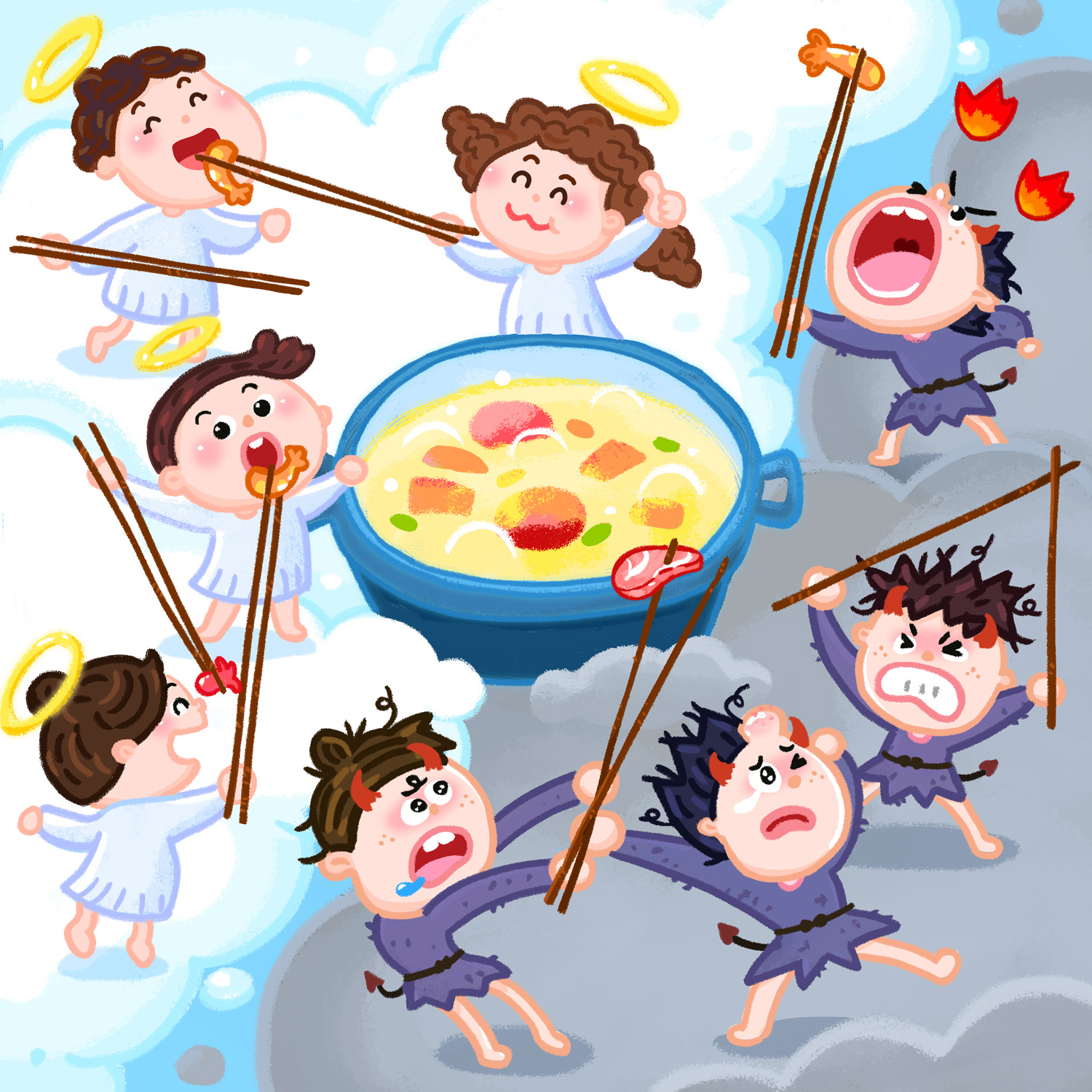 昔々、あるところに、かしこくはないけれど素直な男がおりました。男は、お寺で極楽と地獄の話を聞いてきたばかりでした。
