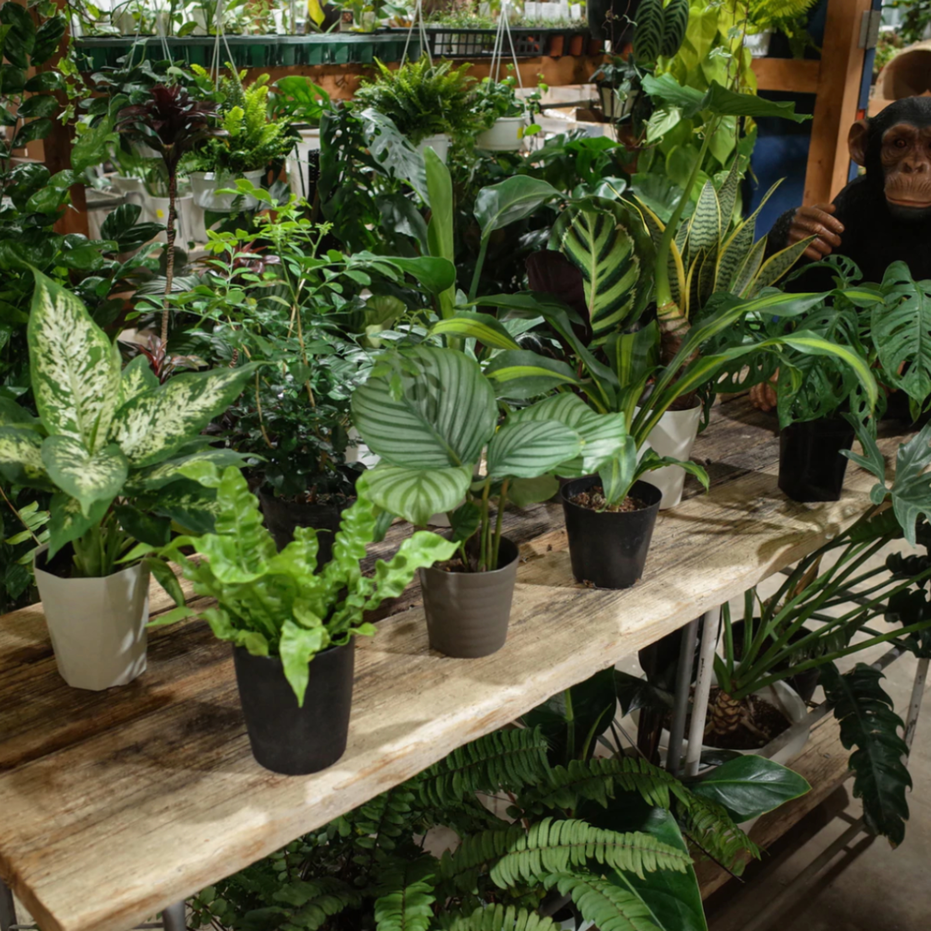 2.5号から5号の観葉植物をランダムで詰め込みます。
