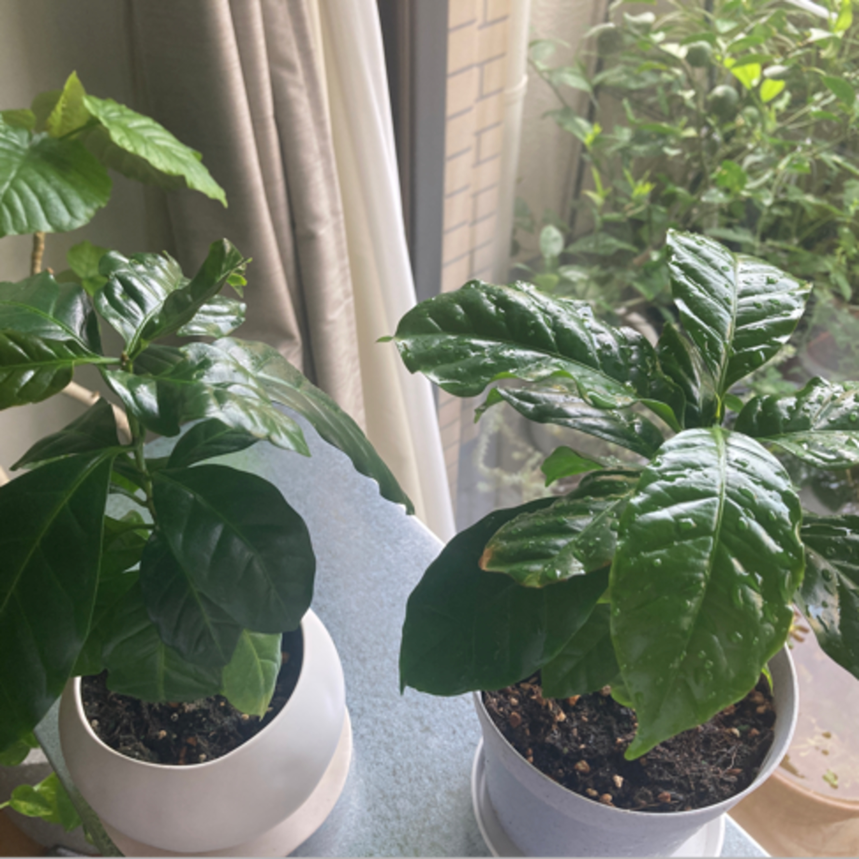 葉っぱが濡れてる濡れてないで差がある見え方になっちゃうんですけど、どっちがどっちかわかりますか?