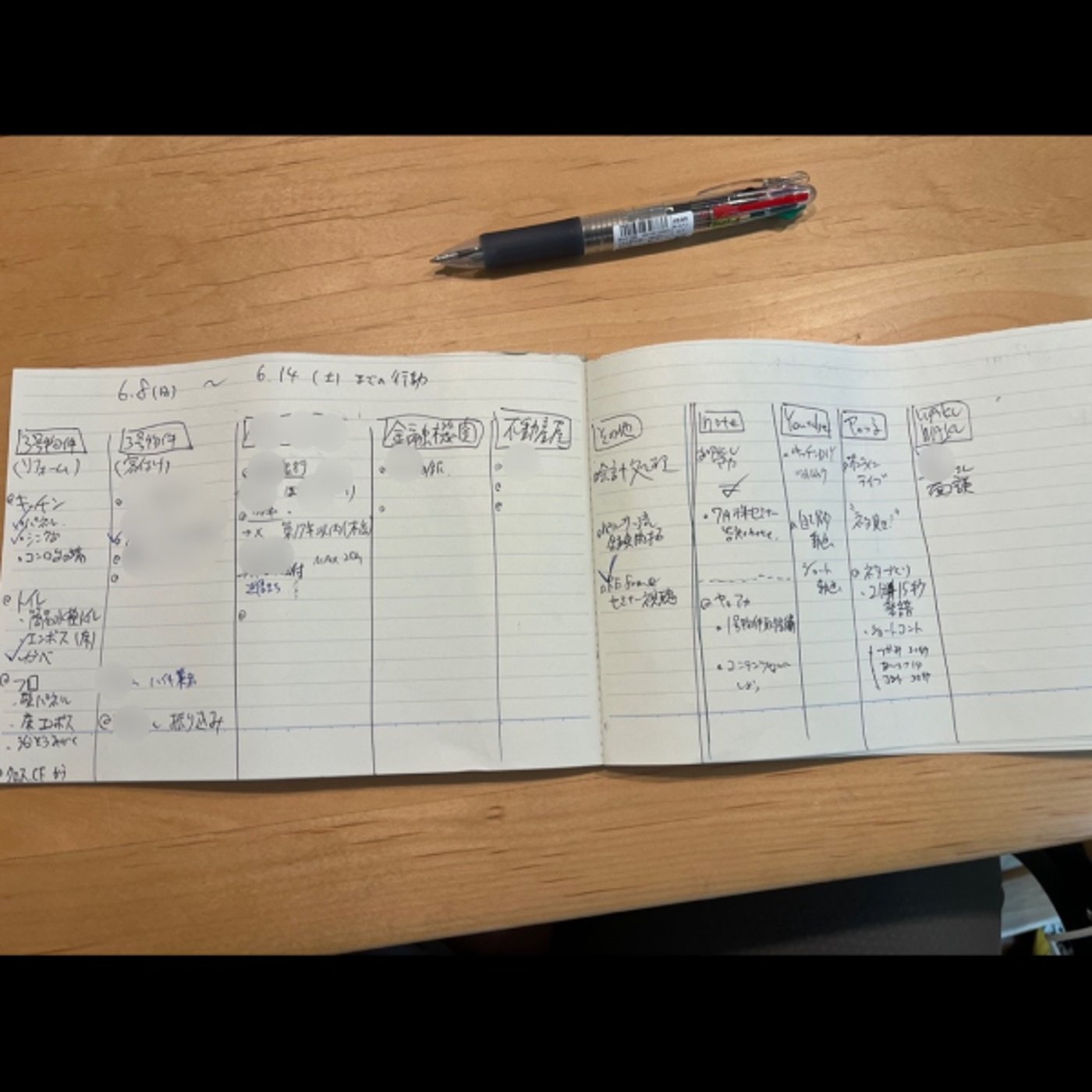 まず6月8日日曜日ですが、やったことはですね、えー、ノート、山る赤投稿、わくわく赤投稿ということで、はい