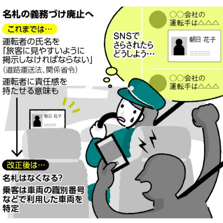 接客業で使われる名札があだとなり、SNSでの嫌がらせやつきまといに遭うケースがあります。バスやタクシーの車内にある名札は、義務づけが見直されることになりました。カフェや薬局でも試行錯誤がつづいています。