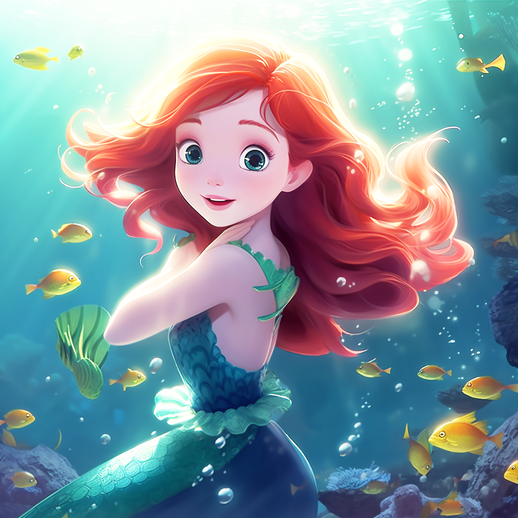 深い深い海の底には、人魚のお城がありました。お城の壁は珊瑚で出来ていて、窓は透き通った琥珀で出来ています。