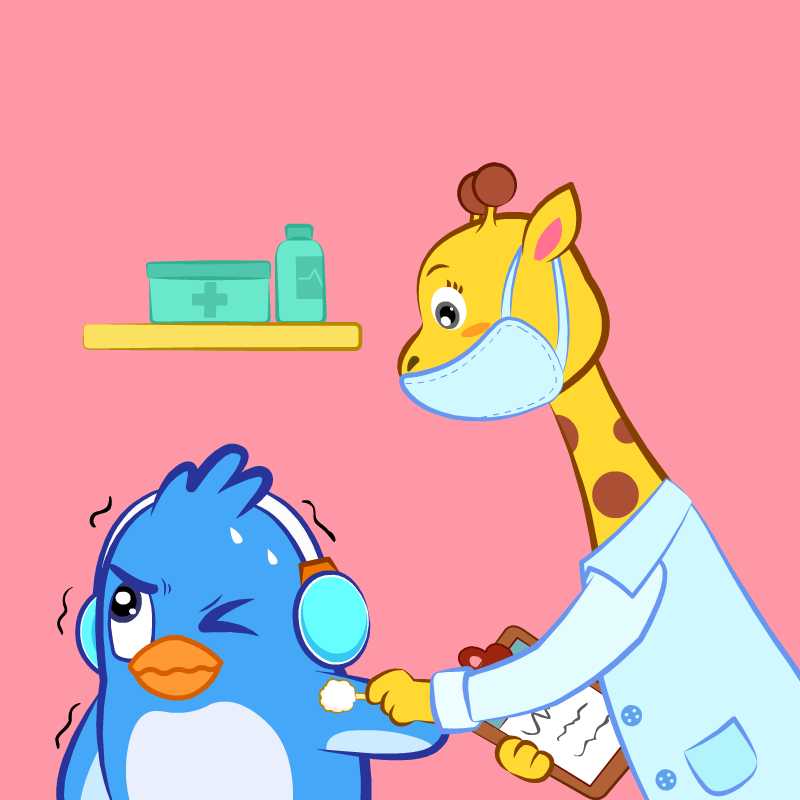 ある日の朝早く、お父さんはフクに予防接種に行くよう言いました。しかし、注射が大嫌いなフクは口をとがらせてつぶやいていました。