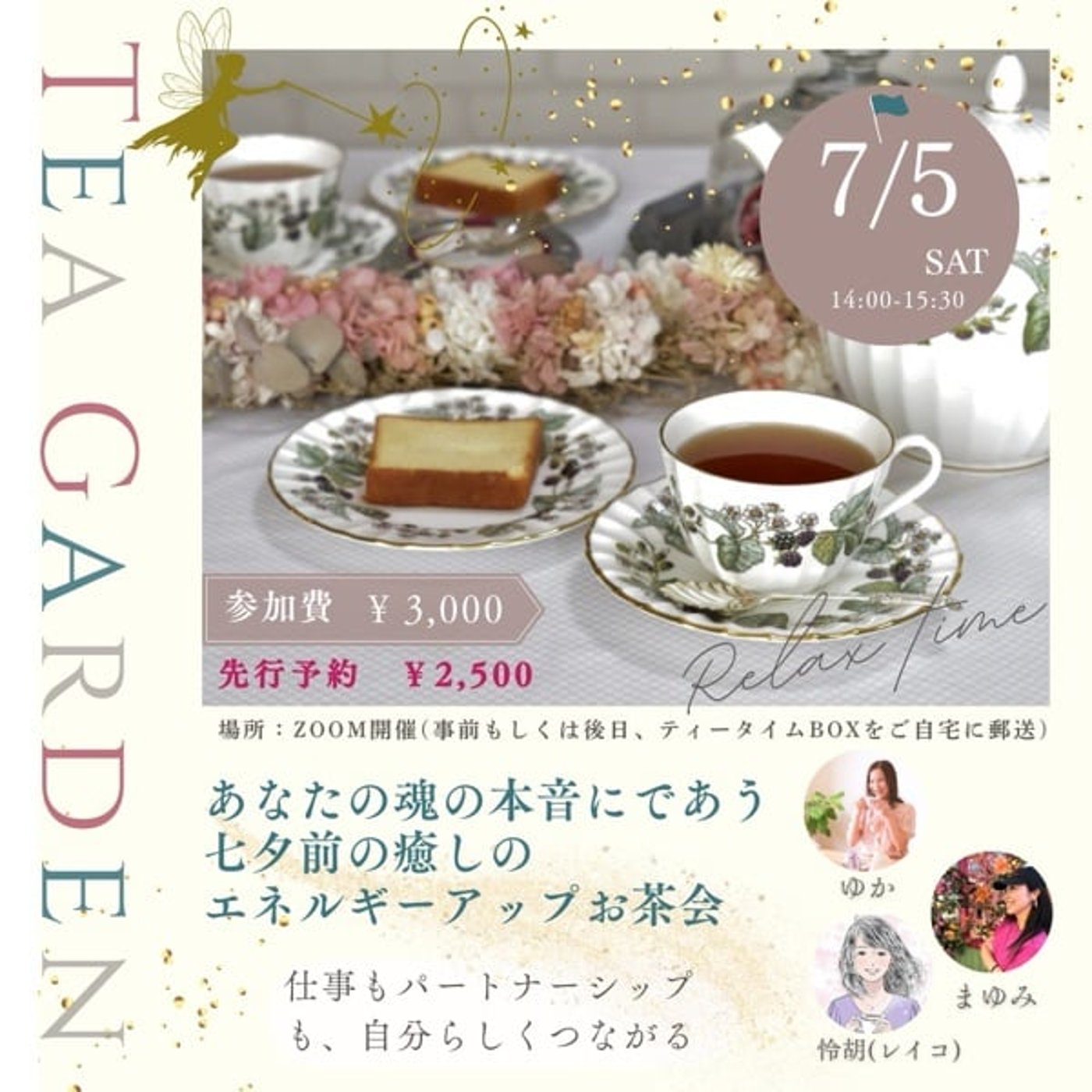 今回は、声と言霊セラピストのれいこさんと、言葉のファンタジスタまゆみさんとお二人をお招きして、オンラインお茶会を開催予定になっています。