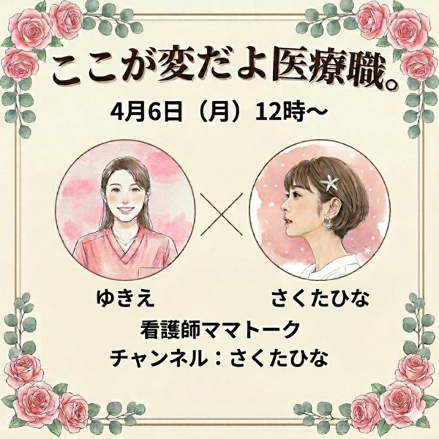 4月8日水曜日夜の8時から看護師コショコショ話のライブ、このチャンネルで行うんですけれども、