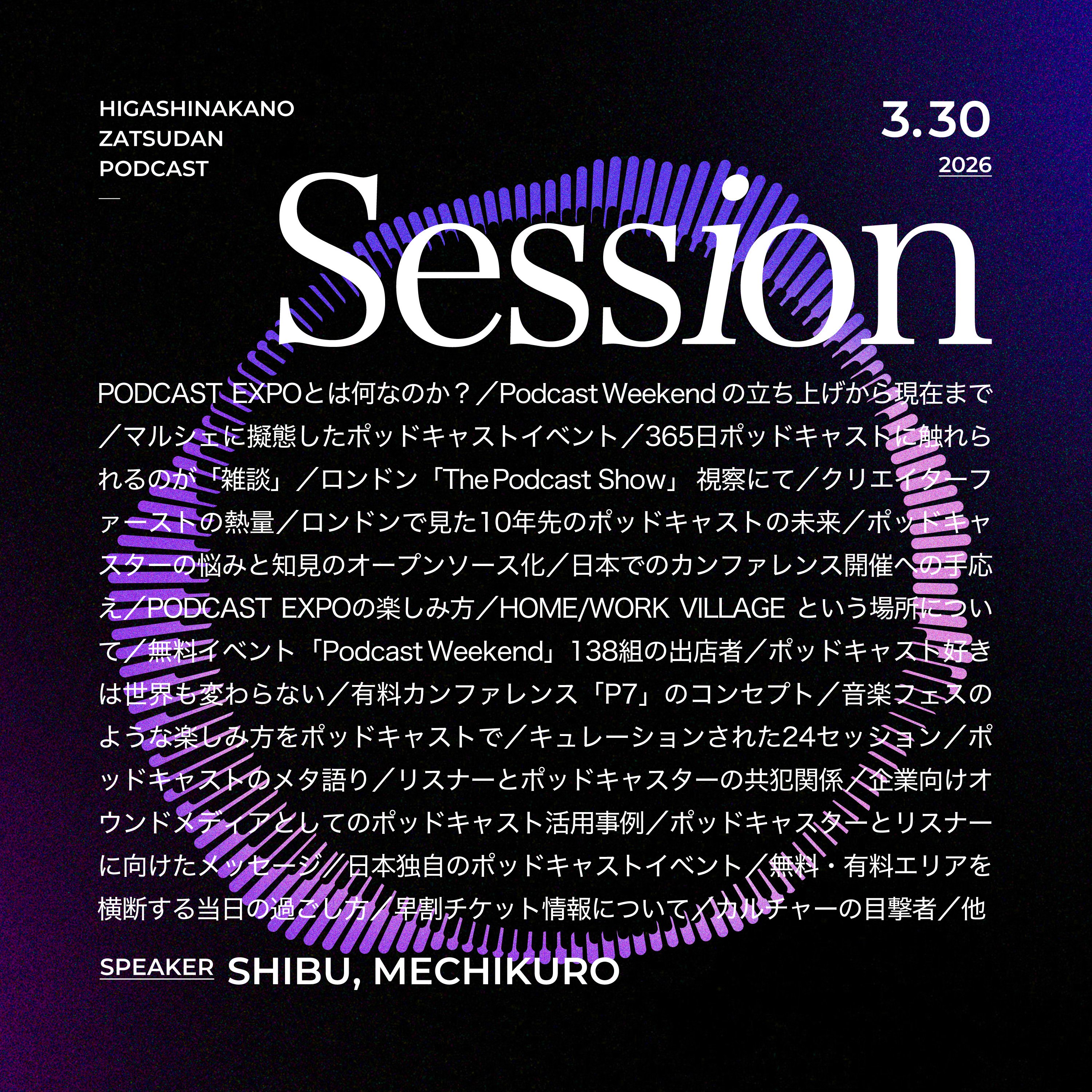 じゃあ、ちょっとそもそもの今回のPODCAST EXPOが開催される母体となったPODCAST WEEKENDっていう、